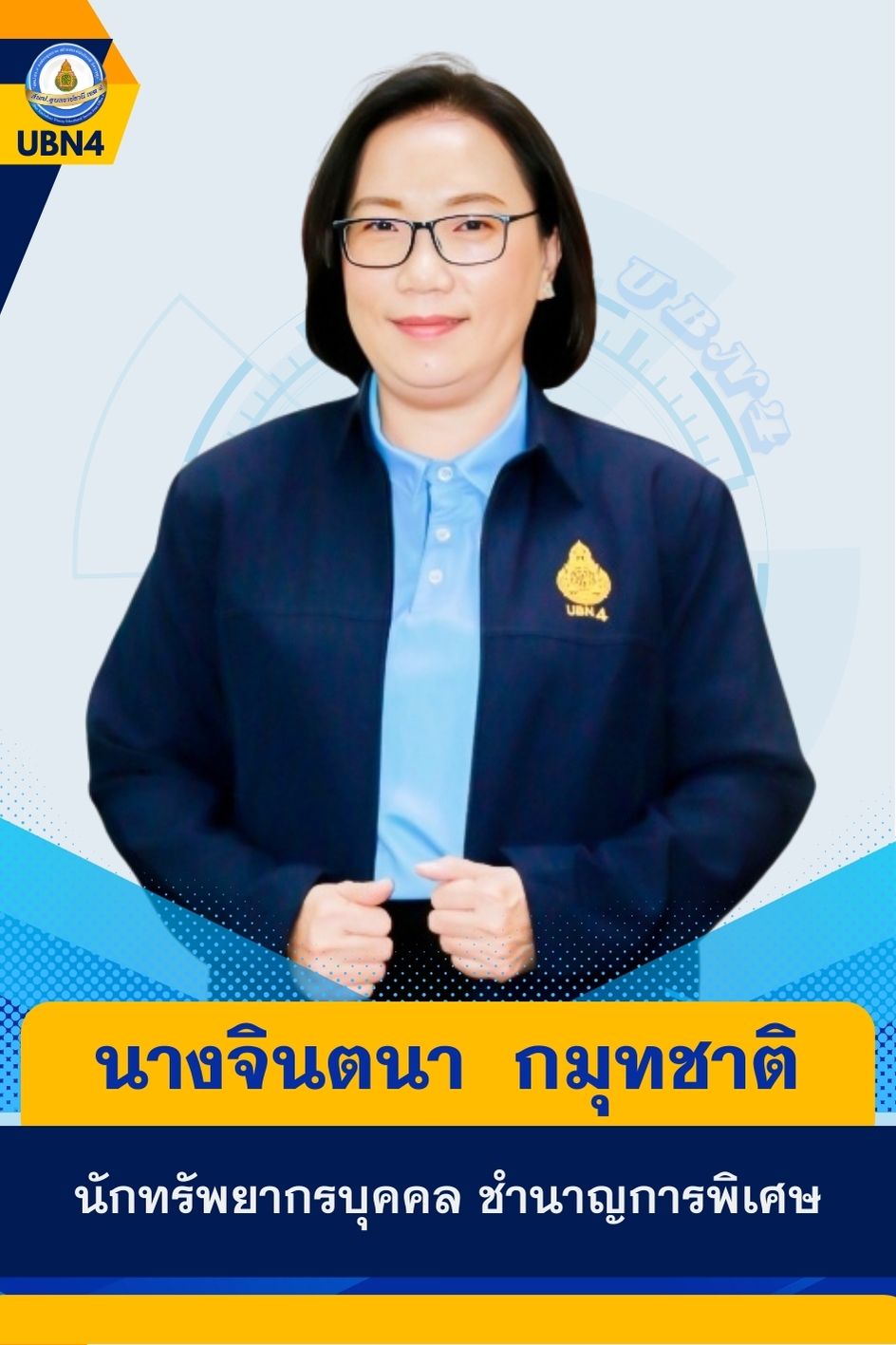 บุคลากรกลุ่มบริหารงานบุคคล ผู้อำนวยการสำนักงานเขตพื้นที่การศึกษาประถมศึกษาอุบลราชธานี เขต 4 รองผู้อำนวยการสำนักงานเขตพื้นที่การศึกษาประถมศึกษาอุบลราชธานี เขต 4 ผู้อำนวยการกลุ่ม บุคลากร ก่อนหน้า ต่อไป