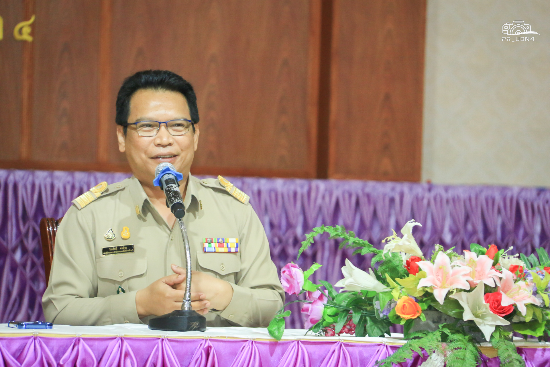 นายชาญชัย ทองแสน ผู้อำนวยการสำนักงานเขตพื้นที่การศึกษาประถมศึกษาอุบลราชธานี เขต 4 พร้อมด้วย ดร.เธียนไท คำล้าน ประธาน อ.ก.ค.ศ. เขตพื้นที่การศึกษาประถมศึกษาอุบลราชธานี เขต 4 นายธำรง สุภาการ อนุกรรมการ อ.ก.ค.ศ. (ผู้แทน ก.ค.ศ.) และ ดร.วีระศักดิ์ คำล้าน รอง ผอ.สพป.อุบลราชธานี เขต 4 กล่าวแสดงความยินดี พบปะให้โอวาทและมอบข้อคิดในการปฏิบัติราชการ ให้กับผู้ผ่านการคัดเลือกเพื่อบรรจุและแต่งตั้งเข้ารับราชการครูและบุคลากรทางการศึกษา ตำแหน่ง ครูผู้ช่วย จำนวน 11 ราย