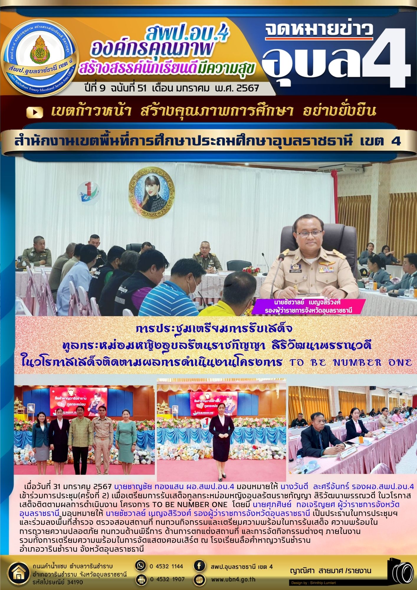 การประชุมเตรียมการรับเสด็จทูลกระหม่อมหญิงอุบลรัตนราชกัญญา สิริวัฒนาพรรณวดี ในวโรกาสเสด็จติดตามผลงานการดำเนินงานโครงการ TO BE NUMBER ONE จดหมายข่าวส่วนกลาง ก่อนหน้า ต่อไป