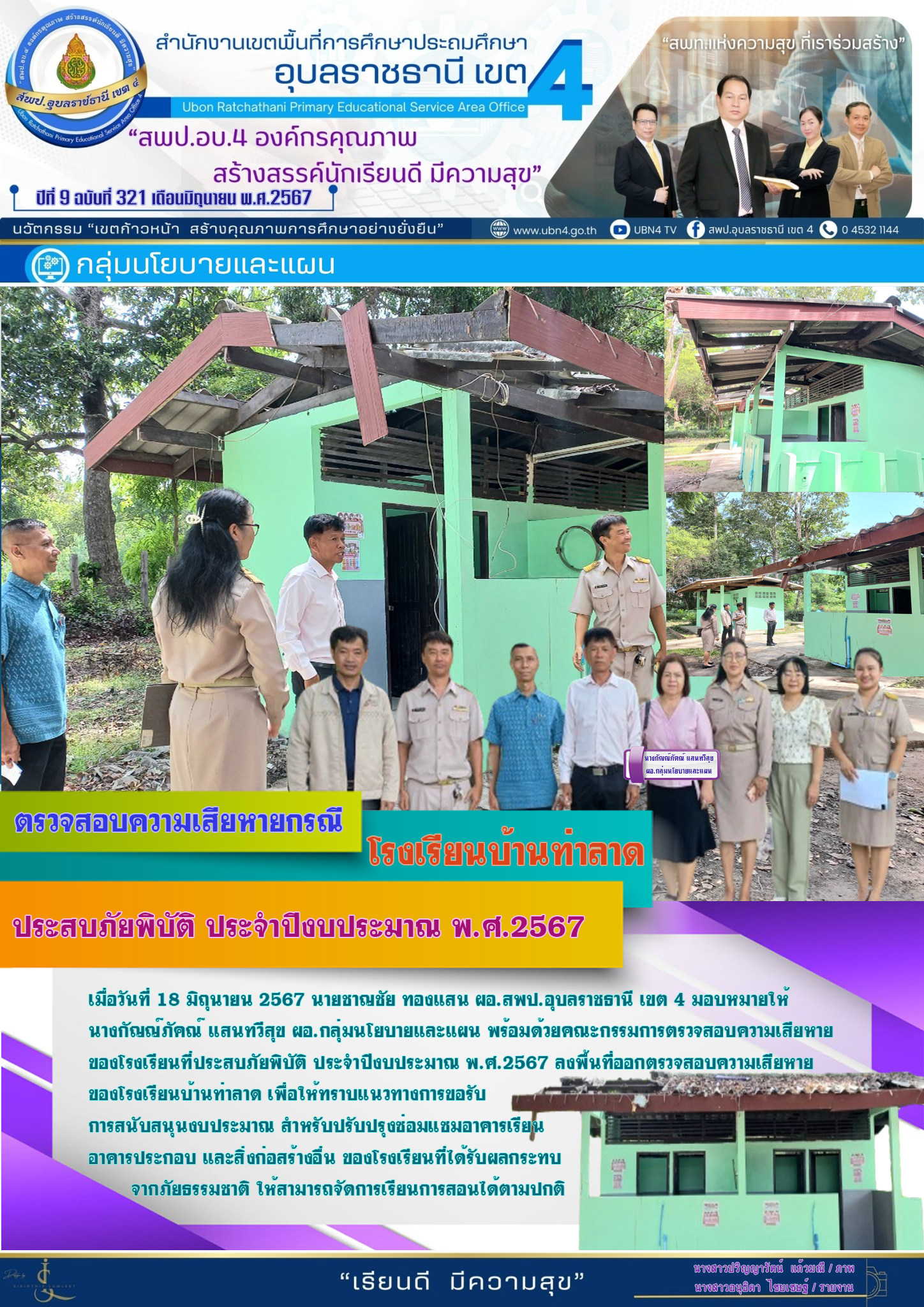 ตรวจสอบความเสียหายกรณีโรงเรียนบ้านท่าลาดประสบภัยพิบัติ ประจำปีงบประมาณ พ.ศ.2567 จดหมายข่าวกลุ่มนโยบายและแผน ก่อนหน้า ต่อไป