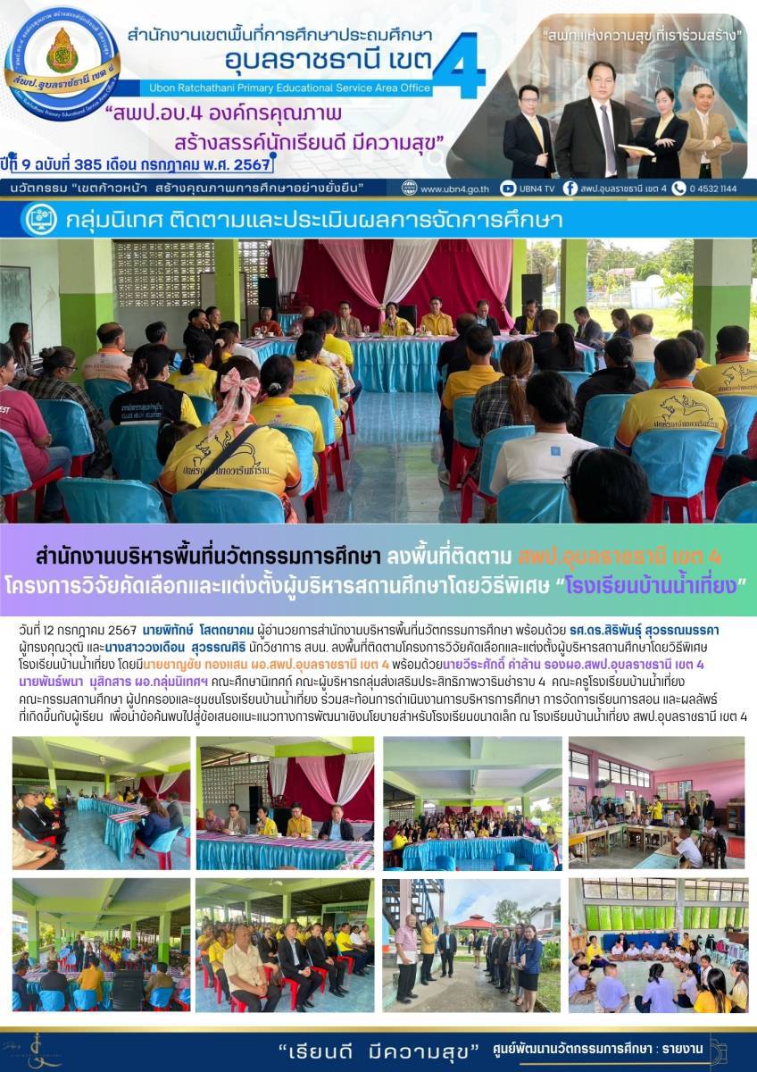 สำนักงานบริหารพื้นที่นวัตกรรมการศึกษา ลงพื้นที่ติดตาม สพป.อุบลราชธานี เขต 4 โครงการวิจัยคัดเลือกและแต่งตั้งผู้บริหารสถานศึกษาโดยวิธีพิเศษ "โรงเรียนบ้านน้ำเที่ยง" จดหมายข่าวกลุ่มนิเทศ ติดตามและประเมินผลการจัดการศึกษา ภารกิจ ผอ.สพป.อุบลราชธานี เขต 4 ก่อนหน้า ต่อไป