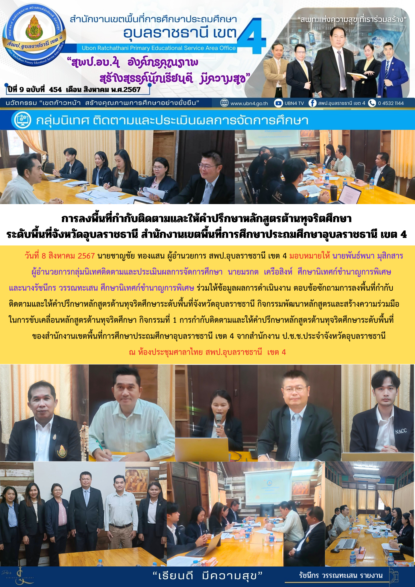 การลงพื้นที่กำกับติดตามและให้คำปรึกษาหลักสูตรต้านทุจริตศึกษา ระดับพื้นที่จังหวัดอุบลราชธานี สำนักงานเขตพื้นที่การศึกษาประถมศึกษาอุบลราชธานี เขต 4 จดหมายข่าวกลุ่มนิเทศ ติดตามและประเมินผลการจัดการศึกษา ก่อนหน้า ต่อไป
