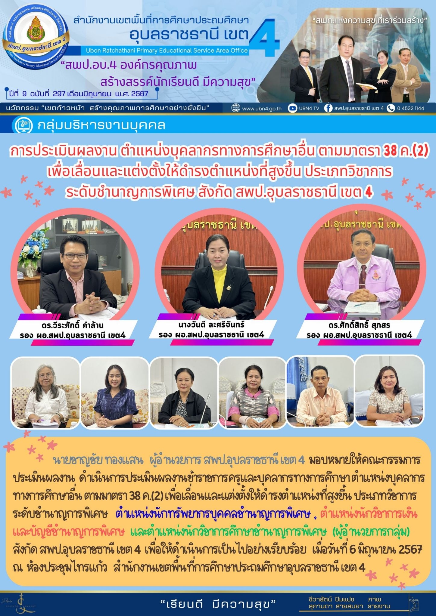 การประเมินผลงาน ตำแหน่งบุคลากรทางการศึกษาอื่น ตามมาตรา 38ค.(2) เพื่อเลื่อนและแต่งตั้งให้ดำรงตำแหน่งที่สูงขึ้น ประเภทวิชาการ ระดับชำนาญการพิเศษ สังกัด สพป.อุบลราชธานี เขต 4 จดหมายข่าวกลุ่มบริหารงานบุคคล ภารกิจ ดร.ศักดิ์สิทธิ์ สุภสร ก่อนหน้า ต่อไป