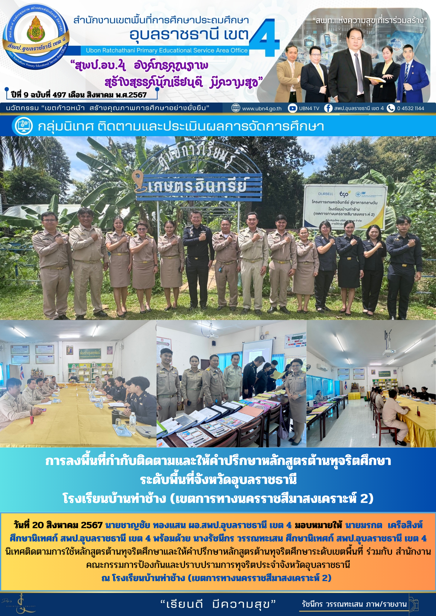 การลงพื้นที่กำกับติดตามและให้คำปรึกษาหลักสูตรต้านทุจริตศึกษา ระดับพื้นที่จังหวัดอุบลราชธานี โรงเรียนบ้านท่าช้าง (เขตการทางนครราชสีมาสงเคราะห์ 2) จดหมายข่าวกลุ่มนิเทศ ติดตามและประเมินผลการจัดการศึกษา ก่อนหน้า ต่อไป
