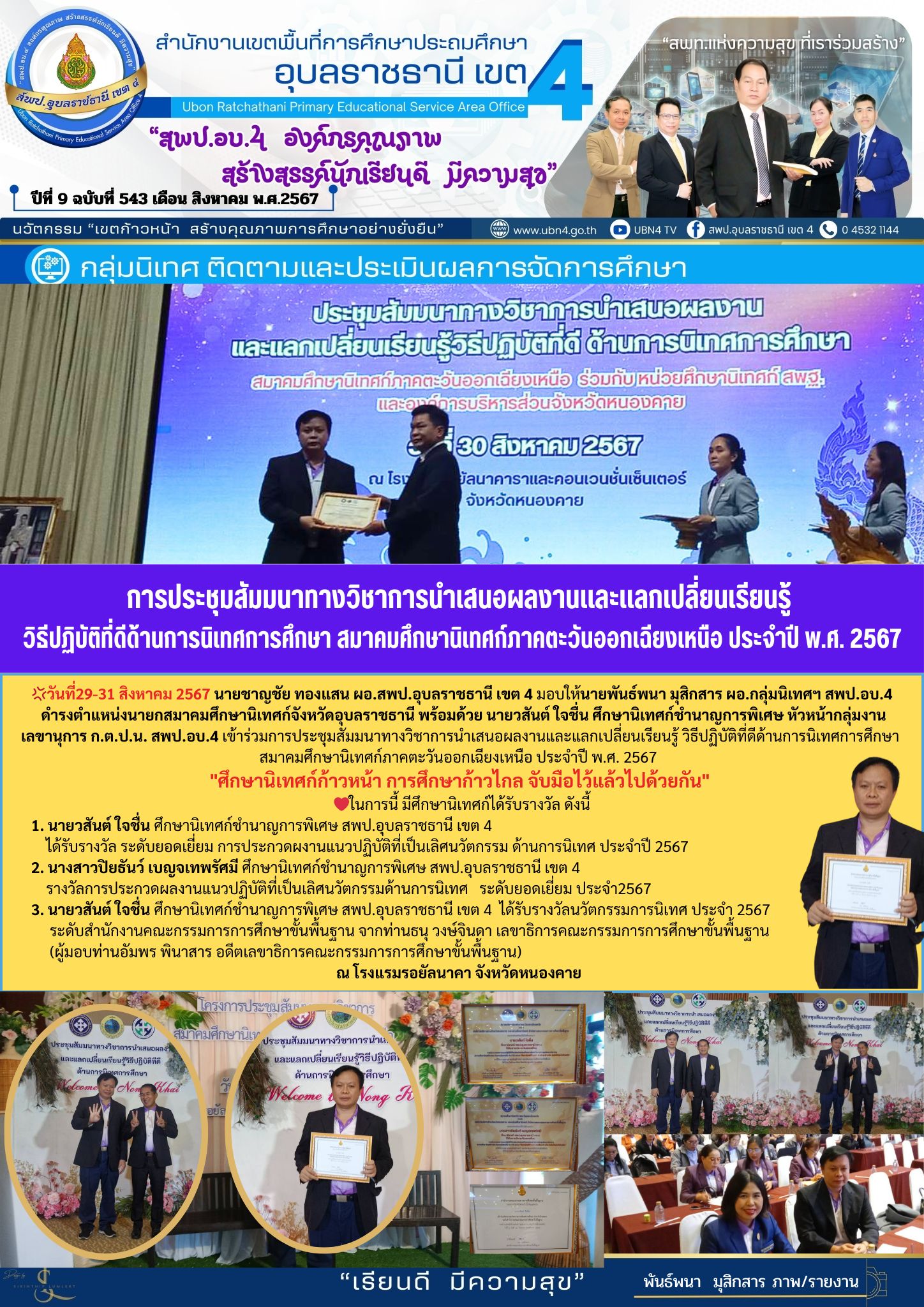 การประชุมสัมมนาทางวิชาการนพเสนอผลงานและแลกเปลี่ยนเรียนรู้วิธีปฏิบัติที่ดีด้านการนิเทศการศึกษา สมาคมศึกษานิเทศก์ภาคตะวันออกเฉียงเหนือ ประจำปี พ.ศ. 2567 จดหมายข่าวกลุ่มนิเทศ ติดตามและประเมินผลการจัดการศึกษา ก่อนหน้า ต่อไป