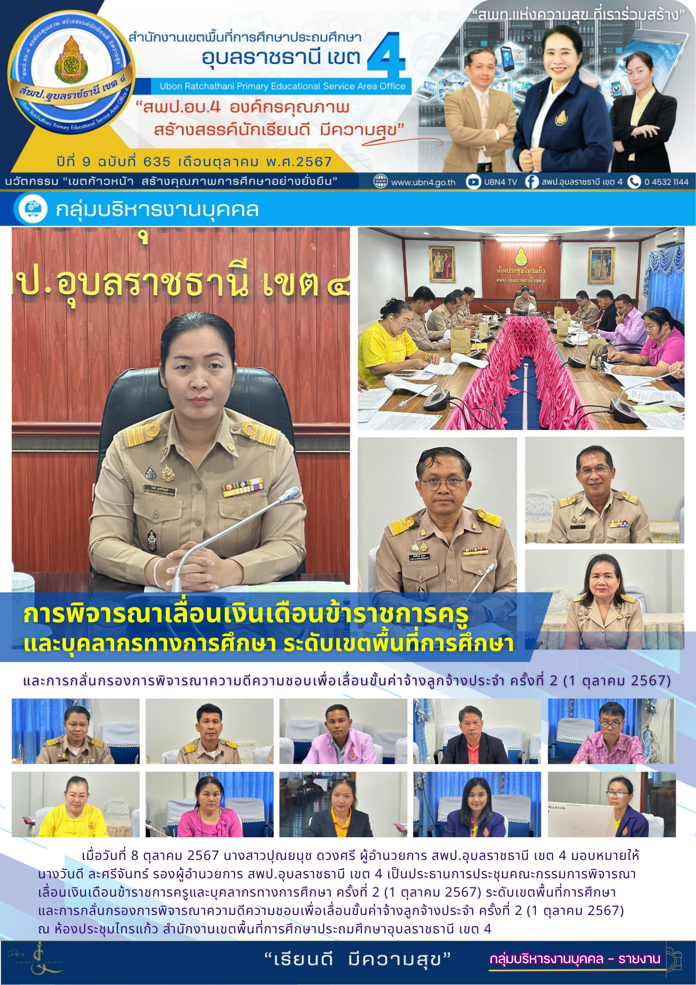 การพิจารณาเลื่อนเงินเดือนข้าราชการครูและบุคลากรทางการศึกษา ระดับเขตพื้นที่การศึกษา และการกลั่นกรองการพิจารณาความดีความชอบเพื่อเลื่อนขั้นค่าจ้างลูกจ้างประจำ ครั้งที่ 2 (1 ตุลาคม 2567) จดหมายข่าวกลุ่มบริหารงานบุคคล ก่อนหน้า ต่อไป