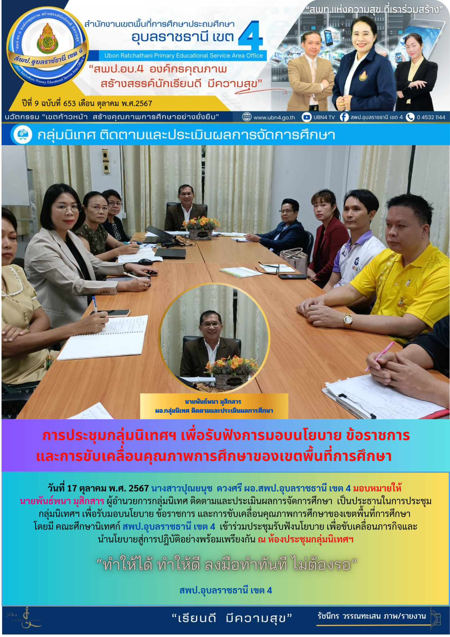 การประชุมกลุ่มนิเทศฯ เพื่อรับฟังการมอบนโยบาย ข้อราชการและการขับเคลื่อนคุณภาพการศึกษาของเขตพื้นที่การศึกษา จดหมายข่าวกลุ่มนิเทศ ติดตามและประเมินผลการจัดการศึกษา ก่อนหน้า ต่อไป