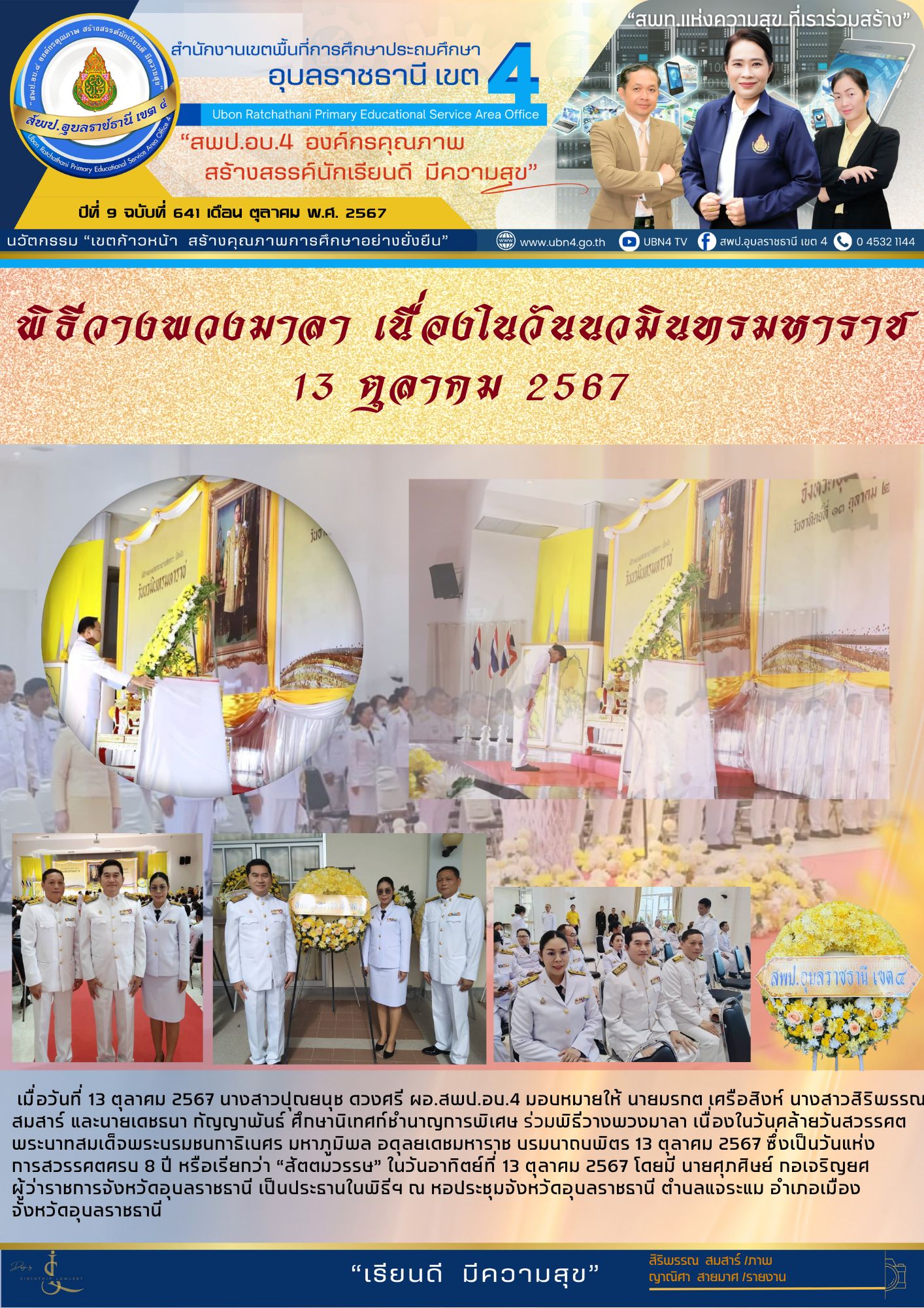 พิธีวางพวงมาลาถวายราชสักการะกิจกรรมเนื่องในวันคล้ายวันสวรรคต พระบาทสมเด็จพระจุลจอมเกล้าเจ้าอยู่หัว 23 ตุลาคม 2567 จดหมายข่าวกลุ่มนิเทศ ติดตามและประเมินผลการจัดการศึกษา จดหมายข่าวส่วนกลาง ก่อนหน้า ต่อไป