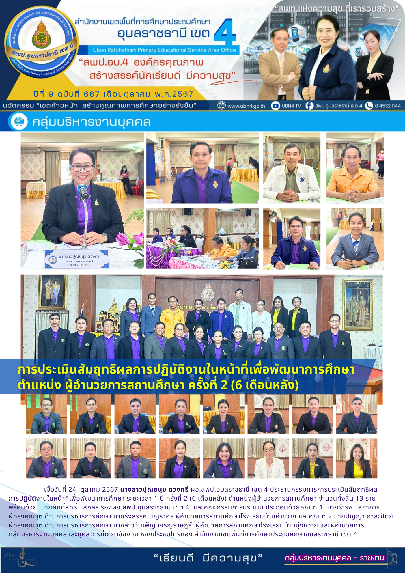 การประเมินสัมฤทธิผลการปฏิบัติงานในหน้าที่เพื่อพัฒนาการศึกษา ระยะเวลา 1 ปี ครั้งที่ 2 (6 เดือนหลัง) ตำแหน่งผู้อำนวยการสถานศึกษา จดหมายข่าวกลุ่มบริหารงานบุคคล ภารกิจ ผอ.สพป.อุบลราชธานี เขต 4 ภารกิจ ดร.ศักดิ์สิทธิ์ สุภสร ก่อนหน้า ต่อไป