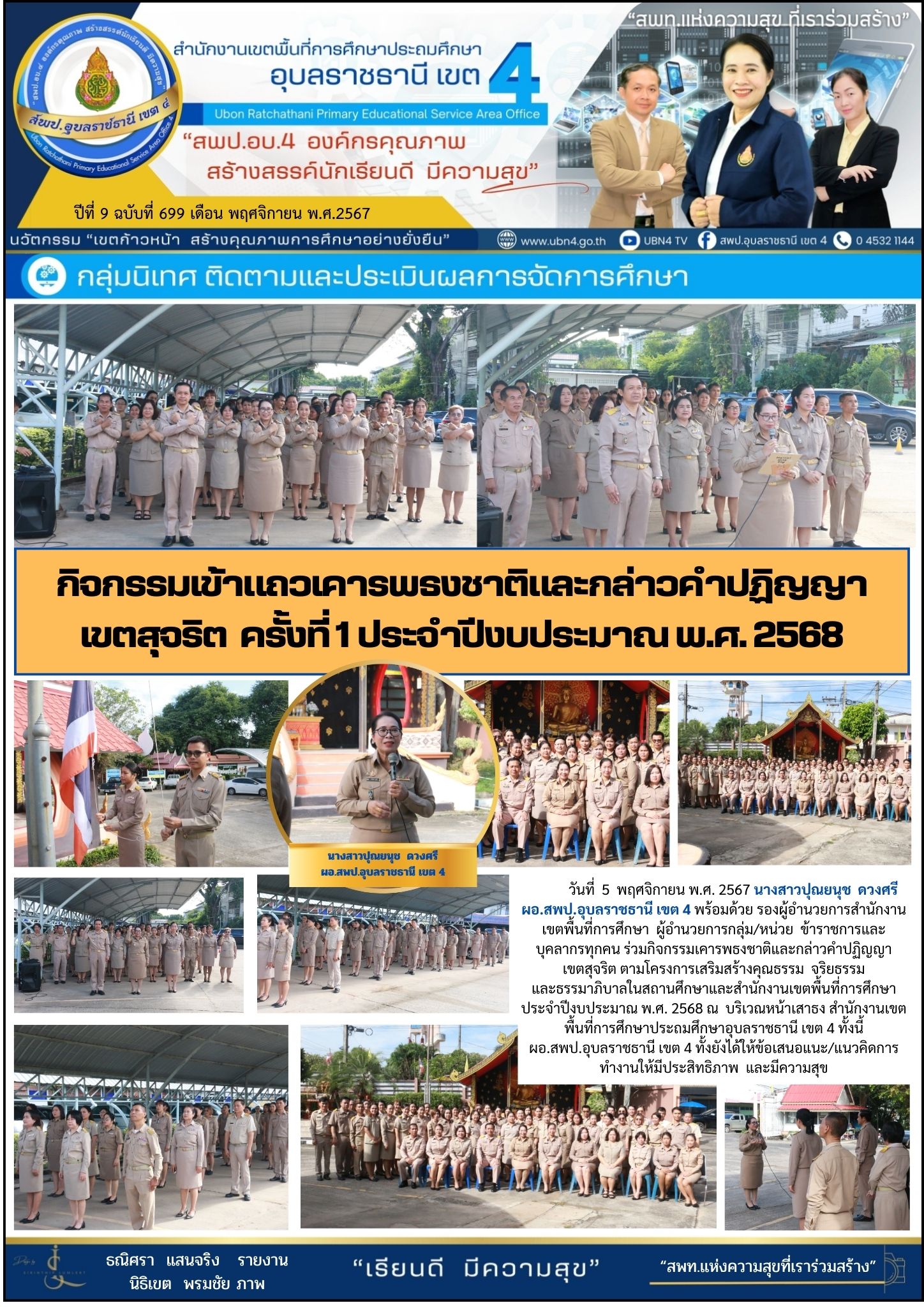 กิจกรรมเข้าแถวเคารพธงชาติและกล่าวคำปฎิญญาเขตสุจริต ครั้งที่ 1 ประจำปีงบประมาณ พ.ศ. 2568 จดหมายข่าวกลุ่มนิเทศ ติดตามและประเมินผลการจัดการศึกษา ภารกิจ ผอ.สพป.อุบลราชธานี เขต 4 ภารกิจ ดร.ศักดิ์สิทธิ์ สุภสร ก่อนหน้า ต่อไป