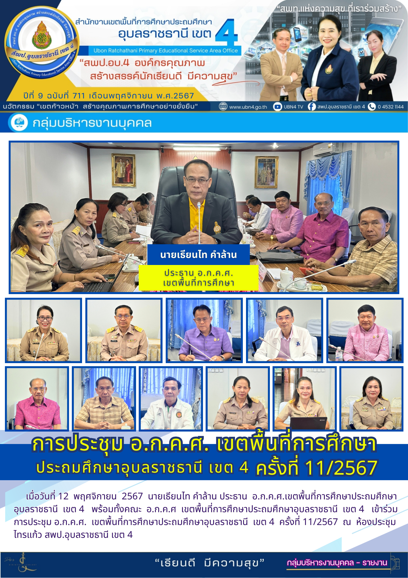 การประชุม อ.ก.ค.ศ. เขตพื้นที่การศึกษาประถมศึกษาอุบลราชธานี เขต 4 ครั้งที่ 11/2567 จดหมายข่าวกลุ่มบริหารงานบุคคล ภารกิจ ผอ.สพป.อุบลราชธานี เขต 4 ภารกิจ ดร.ศักดิ์สิทธิ์ สุภสร ก่อนหน้า ต่อไป