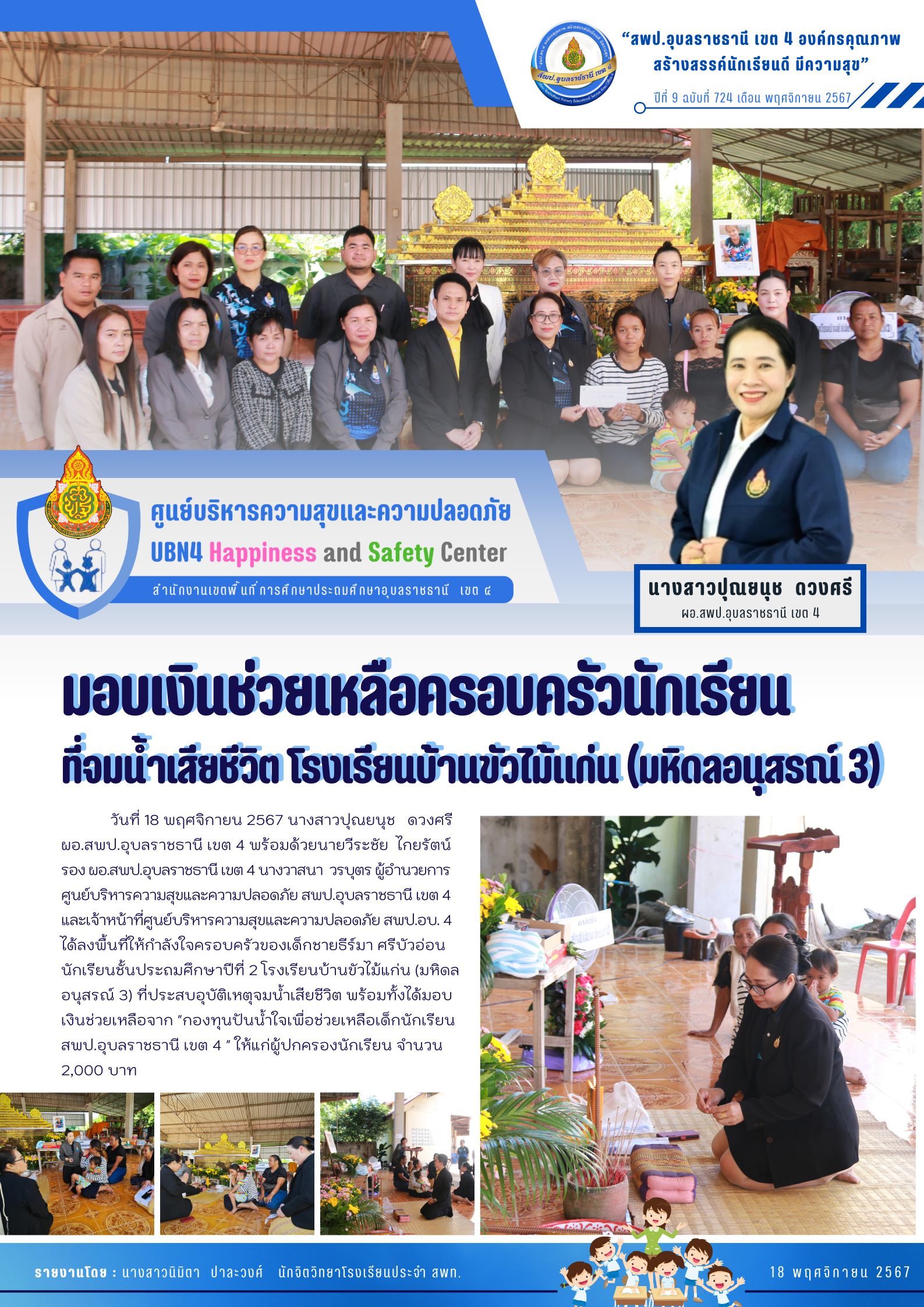 มอบเงินช่วยเหลือครอบครัวนักเรียนที่จมน้ำเสียชีวิต ร.ร.บ้านขัวไม้แก่นฯ จดหมายข่าวส่วนกลาง ภารกิจ ผอ.สพป.อุบลราชธานี เขต 4 จดหมายข่าวศูนย์ความปลอดภัย ก่อนหน้า ต่อไป