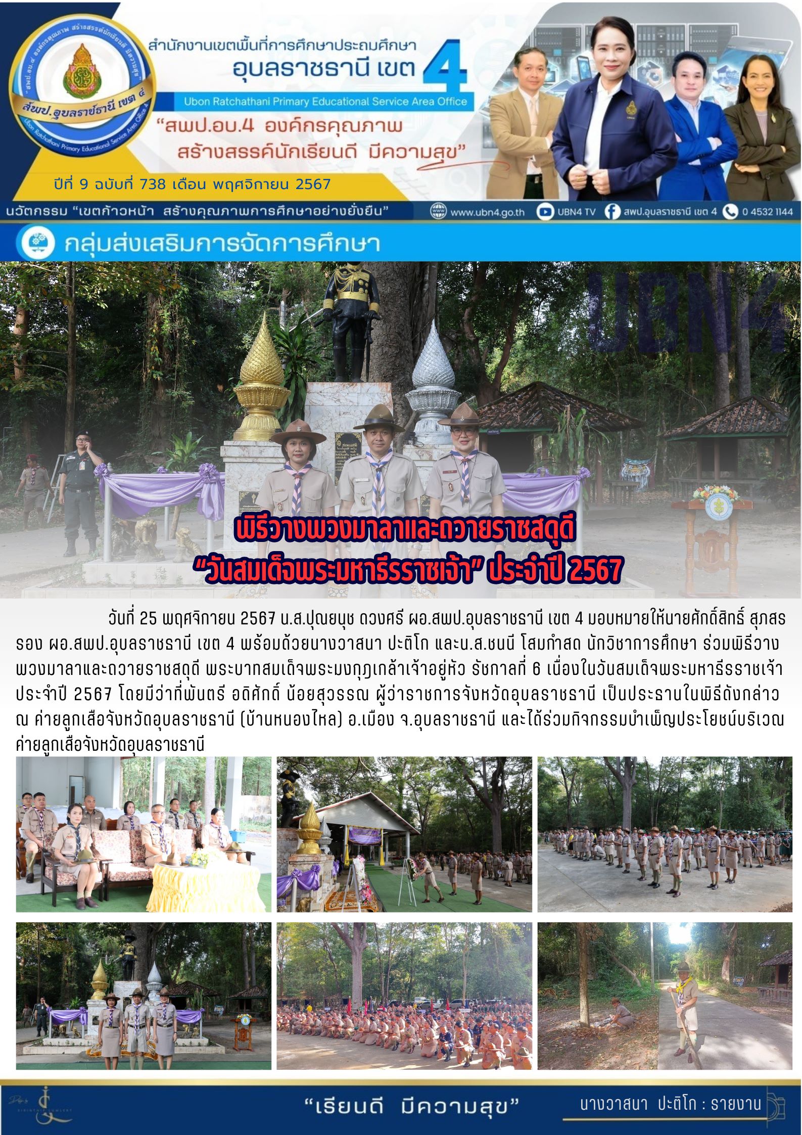 พิธีวางพวงมาลาและถวายราชสดุดี "วันสมเด็จพระมหาธีรราชเจ้า" ประจำปี 2567 จดหมายข่าวส่วนกลาง จดหมายข่าวกลุ่มส่งเสริมการจัดการศึกษา ภารกิจ ดร.ศักดิ์สิทธิ์ สุภสร ก่อนหน้า ต่อไป
