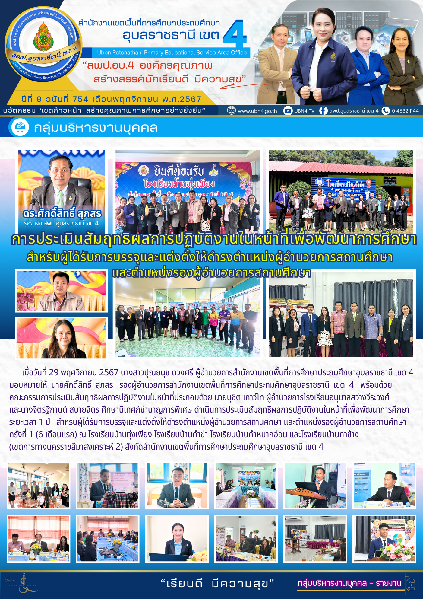 การประเมินสัมฤทธิผลการปฏิบัติงานในหน้าที่เพื่อพัฒนาการศึกษา สำหรับผู้ได้รับการบรรจุและแต่งตั้งให้ดำรงตำแหน่งผู้อำนวยการสถานศึกษา และตำแหน่งรองผู้อำนวยการสถานศึกษา (2) จดหมายข่าวกลุ่มบริหารงานบุคคล ภารกิจ ดร.ศักดิ์สิทธิ์ สุภสร ก่อนหน้า ต่อไป