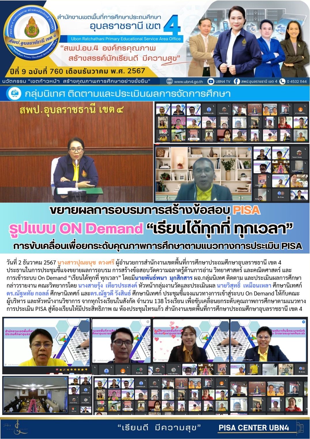 ขยายผลการอบรมการสร้างข้อสอบ PISA รูปแบบ ON Demand "เรียนได้ทุกที่ ทุกเวลา" การขับเคลื่อนเพื่อยกระดับคุณภาพการศึกษาตามแนวทางการประเมิน PISA จดหมายข่าวกลุ่มนิเทศ ติดตามและประเมินผลการจัดการศึกษา ภารกิจ ผอ.สพป.อุบลราชธานี เขต 4 ก่อนหน้า ต่อไป