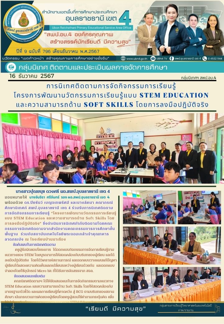 การนิเทศติดตามการจัดกิจกรรมการเรียนรู้โครงการพัฒนานวัตกรรมการเรียนรู้แบบ STEM EDUCATION และความสามารถด้าน SOFT SKILLS โดยการลงมือปฏิบัติจริง จดหมายข่าวกลุ่มนิเทศ ติดตามและประเมินผลการจัดการศึกษา ภารกิจ นางจันจิรา ศรีจันทร์ ก่อนหน้า ต่อไป
