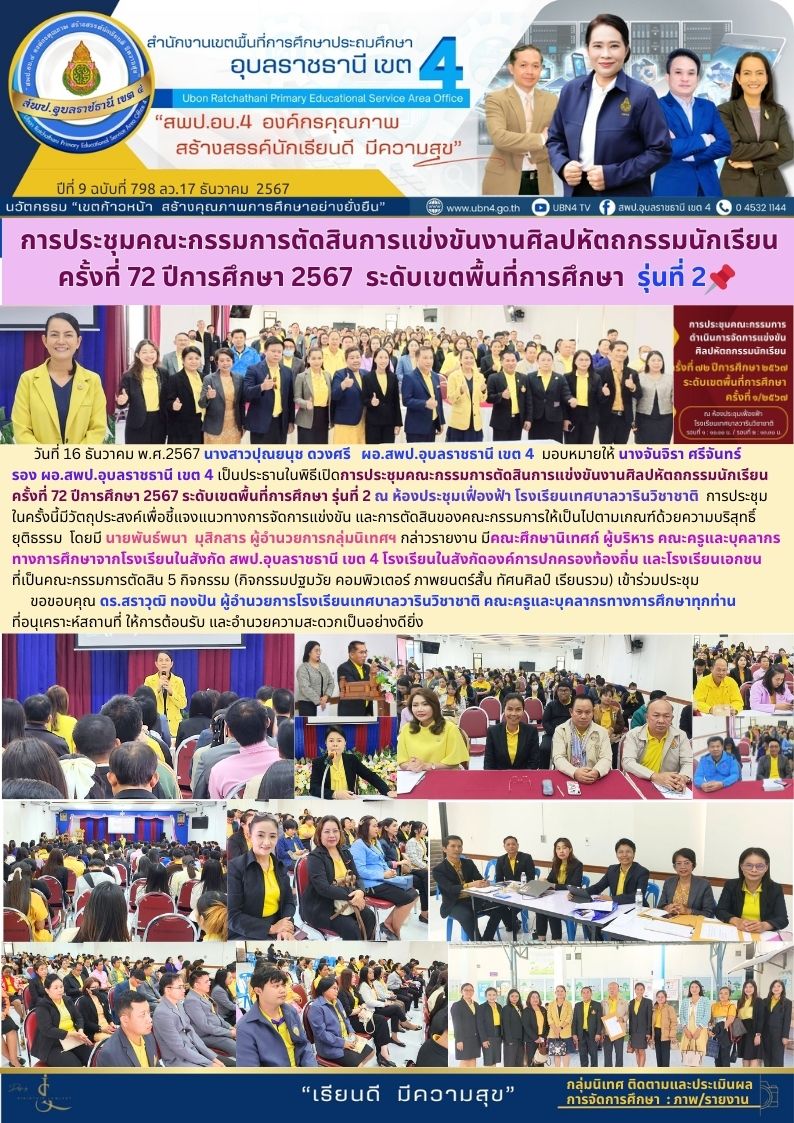 การประชุมคณะกรรมการตัดสินการแข่งขันงานศิลปหัตถกรรมนักเรียน ครั้งที่ 72 ปีการศึกษา 2567 ระดับเขตพื้นที่การศึกษา รุ่นที่ 2 จดหมายข่าวกลุ่มนิเทศ ติดตามและประเมินผลการจัดการศึกษา ภารกิจ นางจันจิรา ศรีจันทร์ ก่อนหน้า ต่อไป