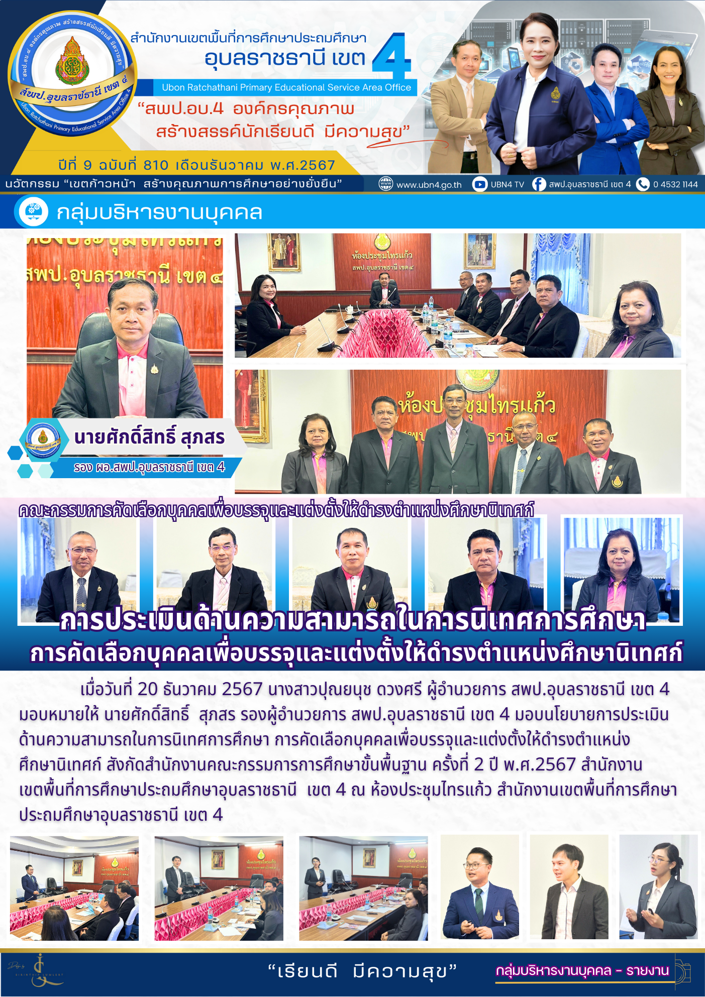 การประเมินด้านความสามารถในการนิเทศการศึกษา การคัดเลือกบุคคลเพื่อบรรจุและแต่งตั้งให้ดำรงตำแหน่งศึกษานิเทศก์ จดหมายข่าวกลุ่มบริหารงานบุคคล ภารกิจ รอง ผอ.สพป.อุบลราชธานี เขต 4 ภารกิจ ดร.ศักดิ์สิทธิ์ สุภสร ก่อนหน้า ต่อไป