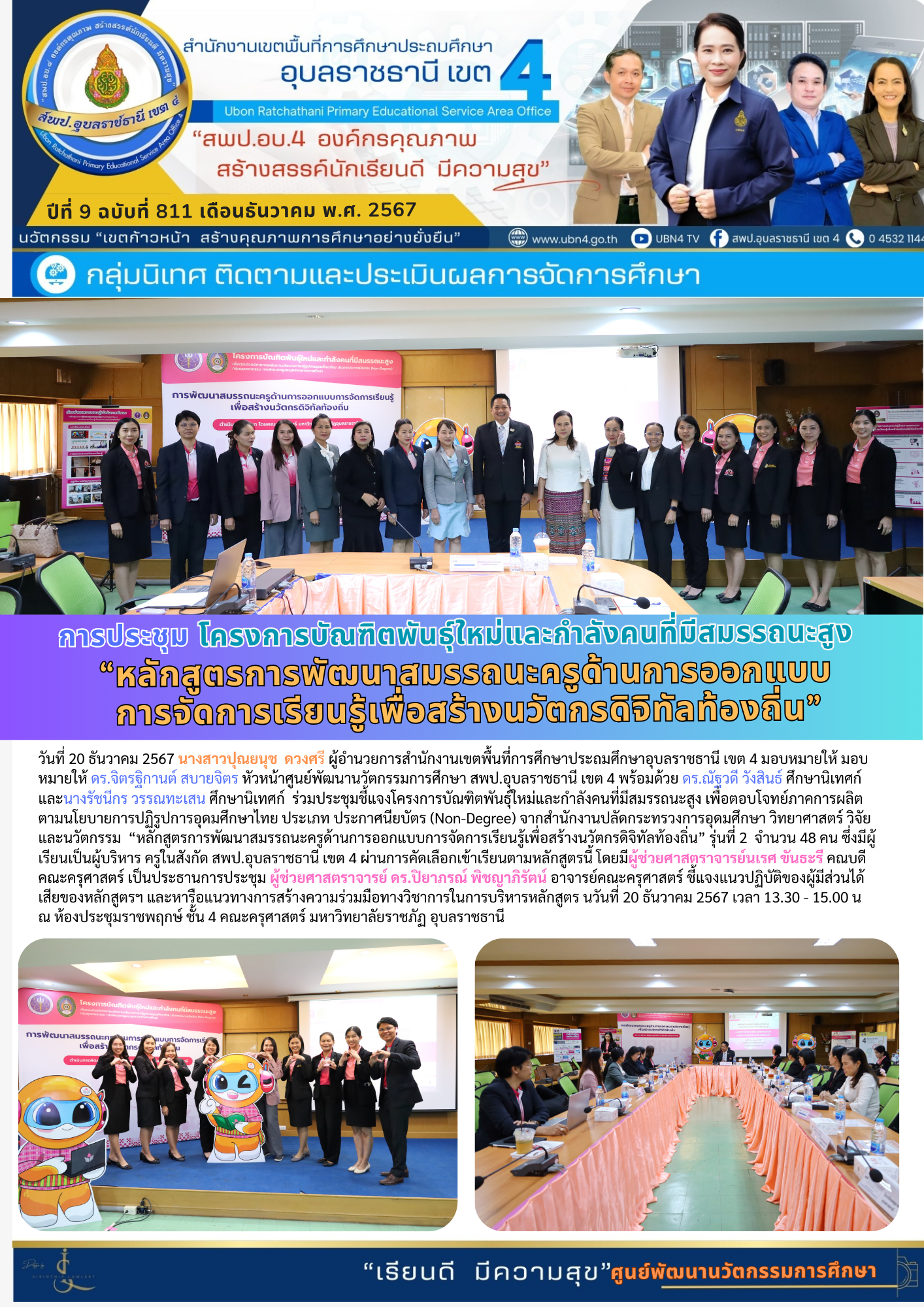 การประชุมโครงการบัณฑิตพันธุ์ใหม่และกำลังคนที่มีสมรรถนะสูง "หลักสูตรการพัฒนาสมรรถนะครูด้านการออกแบบการจัดการเรียนรู้เพื่อสร้างนวัตกรดิจิทัลท้องถิ่น" จดหมายข่าวกลุ่มนิเทศ ติดตามและประเมินผลการจัดการศึกษา ก่อนหน้า ต่อไป