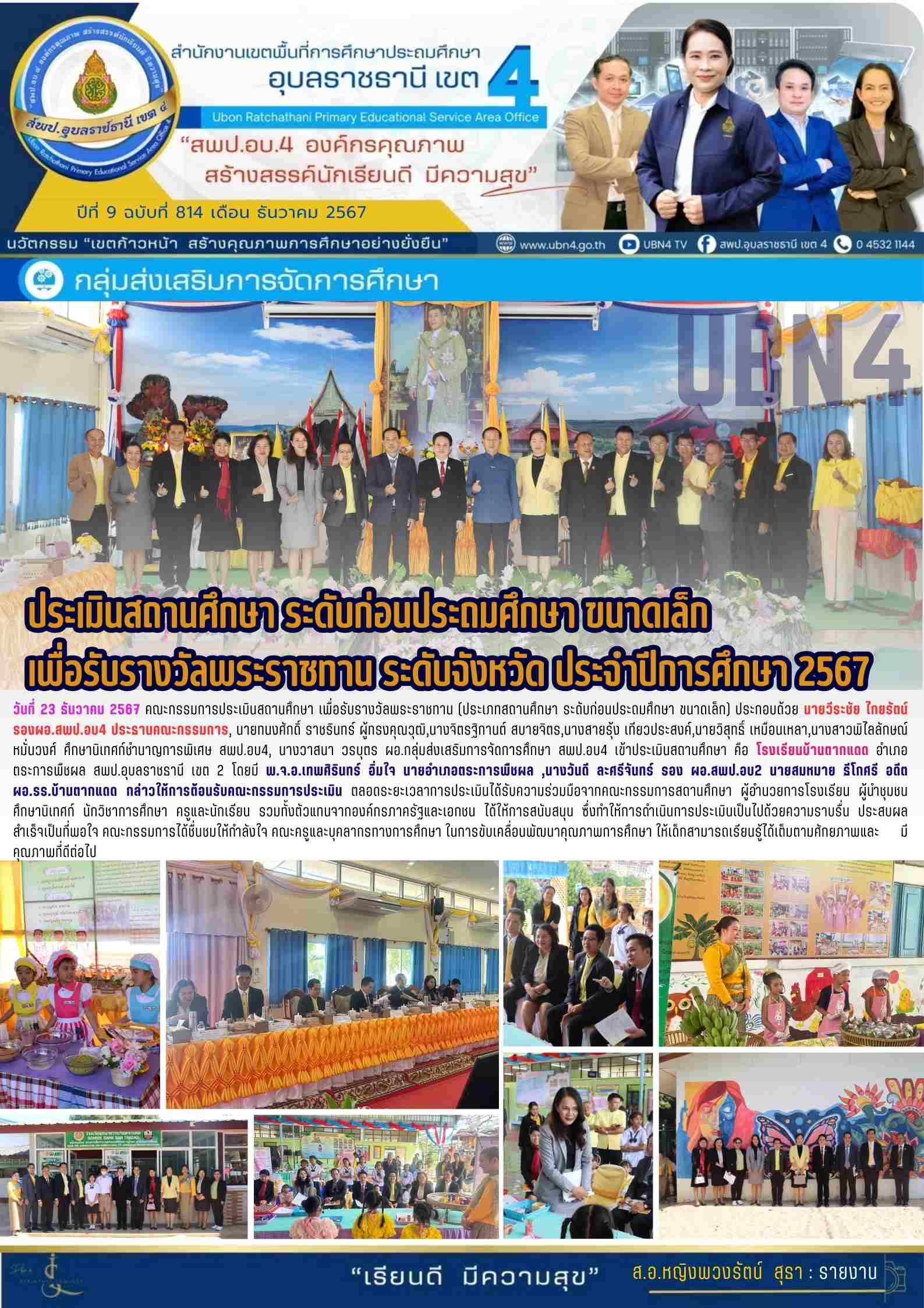 ประเมินสถานศึกษา ระดับก่อนประถมศึกษา ขนาดเล็ก เพื่อรับรางวัลพระราชทาน ระดับจังหวัด ประจำปีการศึกษา 2567 จดหมายข่าวส่วนกลาง จดหมายข่าวกลุ่มส่งเสริมการจัดการศึกษา ภารกิจ นายวีระชัย ไกยรัตน์ ก่อนหน้า ต่อไป