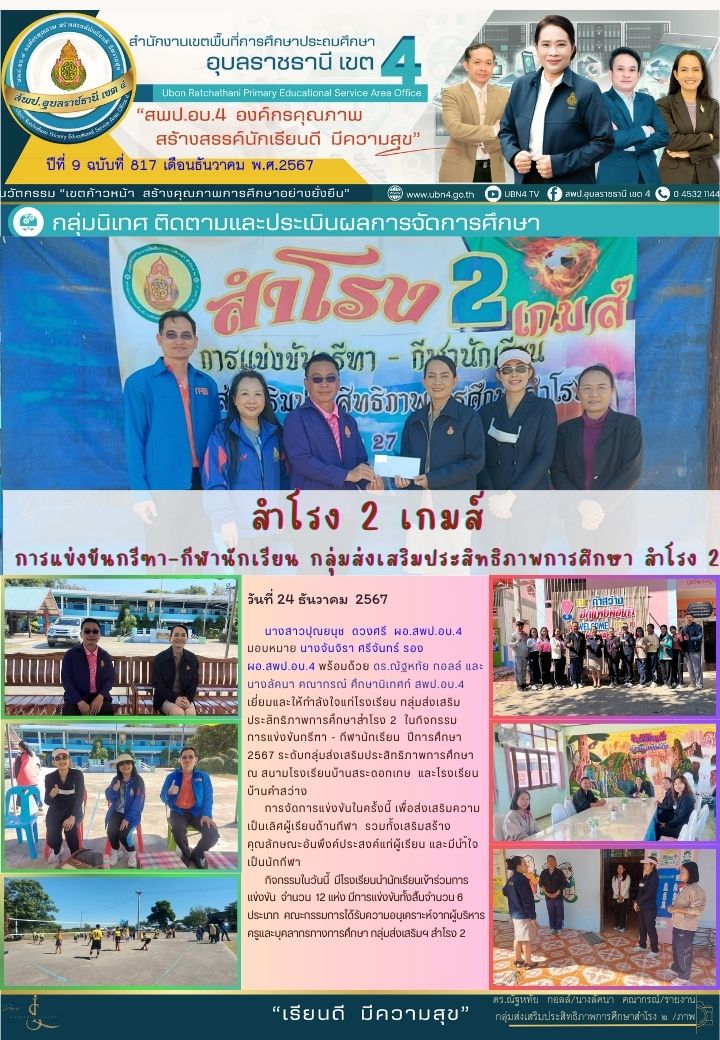 "สำโรง 2 เกมส์" การแข่งขันกรีฑา-กีฬานักเรียน กลุ่มส่งเสริมประสิทธิภาพการศึกษา สำโรง 2 จดหมายข่าวกลุ่มนิเทศ ติดตามและประเมินผลการจัดการศึกษา ภารกิจ นางจันจิรา ศรีจันทร์ ก่อนหน้า ต่อไป