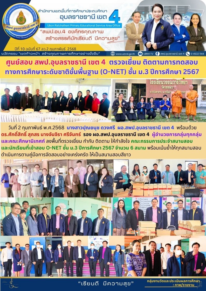 ศูนย์สอบ สพป.อุบลราชธานี เขต 4 ตรวจเยี่ยม ติดตามการทดสอบทางการศึกษาระดับชาติขั้นพื้นฐาน (O-NET) ชั้น ม.3 ปีการศึกษา 2567 ภารกิจ ผอ.สพป.อุบลราชธานี เขต 4 ภารกิจ ดร.ศักดิ์สิทธิ์ สุภสร ภารกิจ นางจันจิรา ศรีจันทร์ ก่อนหน้า ต่อไป