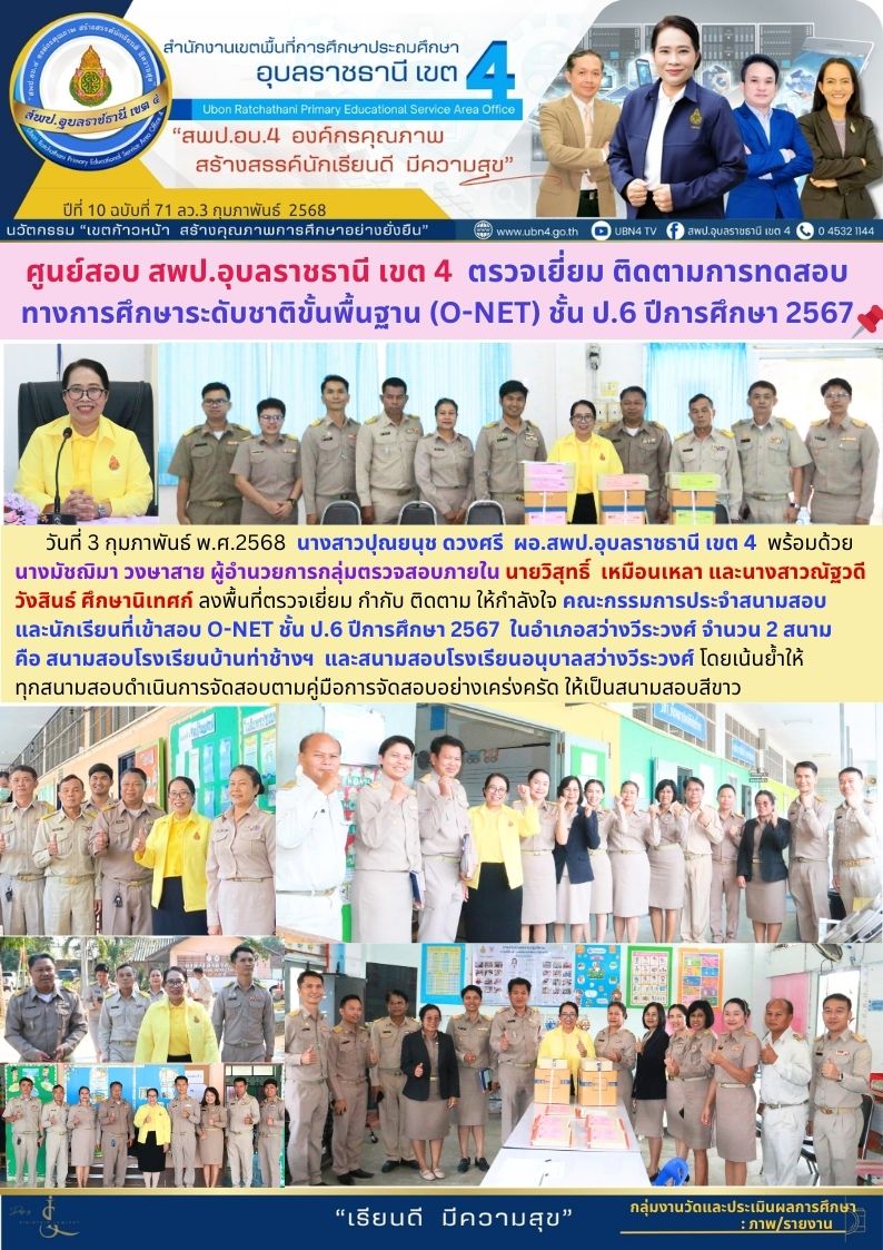 ศูนย์สอบ สพป.อุบลราชธาชธานีเขต 4 ตรวจเยี่ยม ติดตามการทดสอบทางการศึกษาระดับชาติขั้นพื้นฐาน (O-Net) ชั้น ป.6 ปีการศึกษา 2567 ภารกิจ ผอ.สพป.อุบลราชธานี เขต 4 ก่อนหน้า ต่อไป