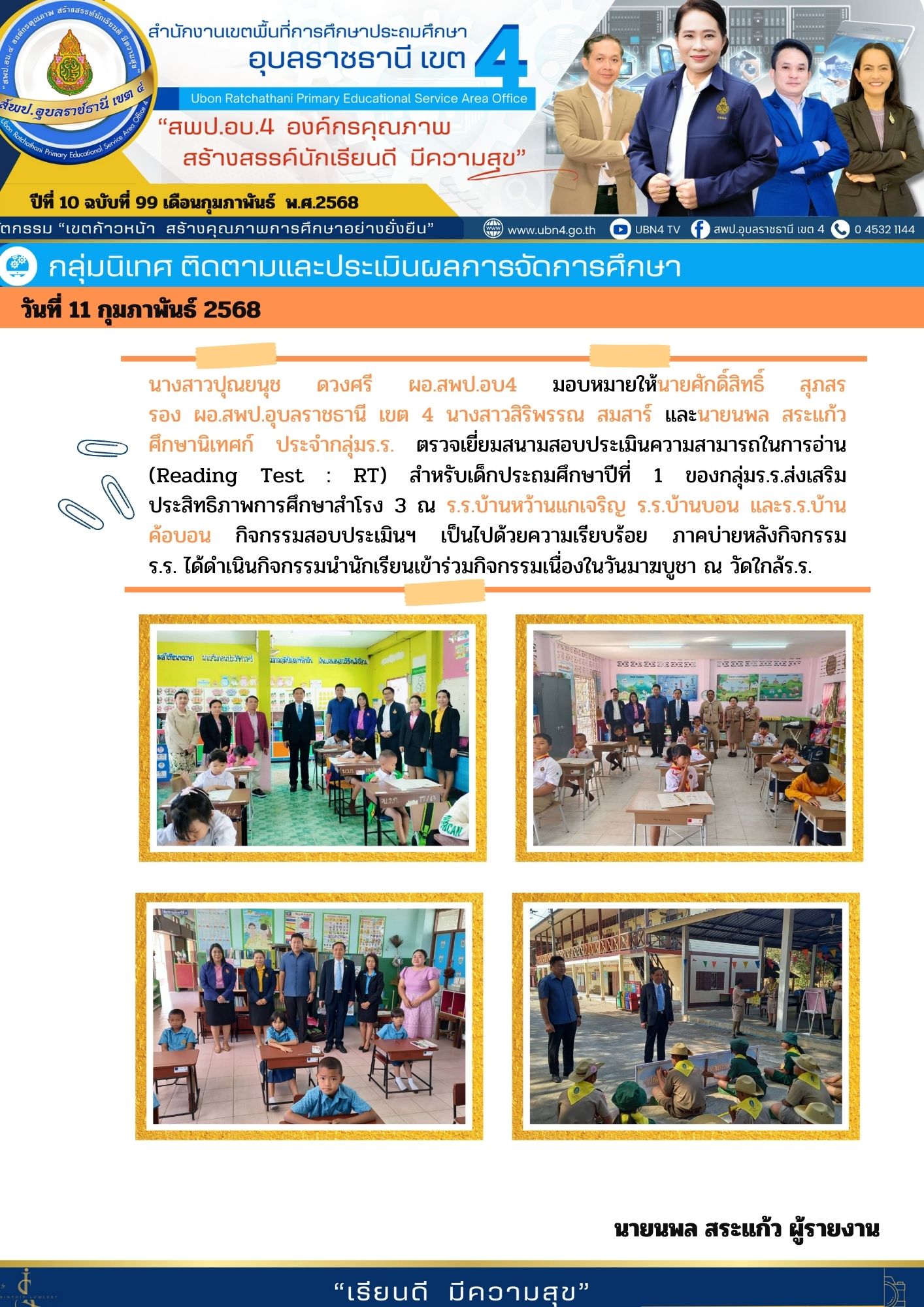 ตรวจเยี่ยมสนามสอบประเมินความสามารถในการอ่าน (Reading Test : RT) สำหรับเด็กประถมศึกษาปีที่ 1 ของกลุ่มโรงเรียนส่งเสริมประสิทธิภาพการศึกษาสำโรง 3 ภารกิจ ดร.ศักดิ์สิทธิ์ สุภสร ก่อนหน้า ต่อไป