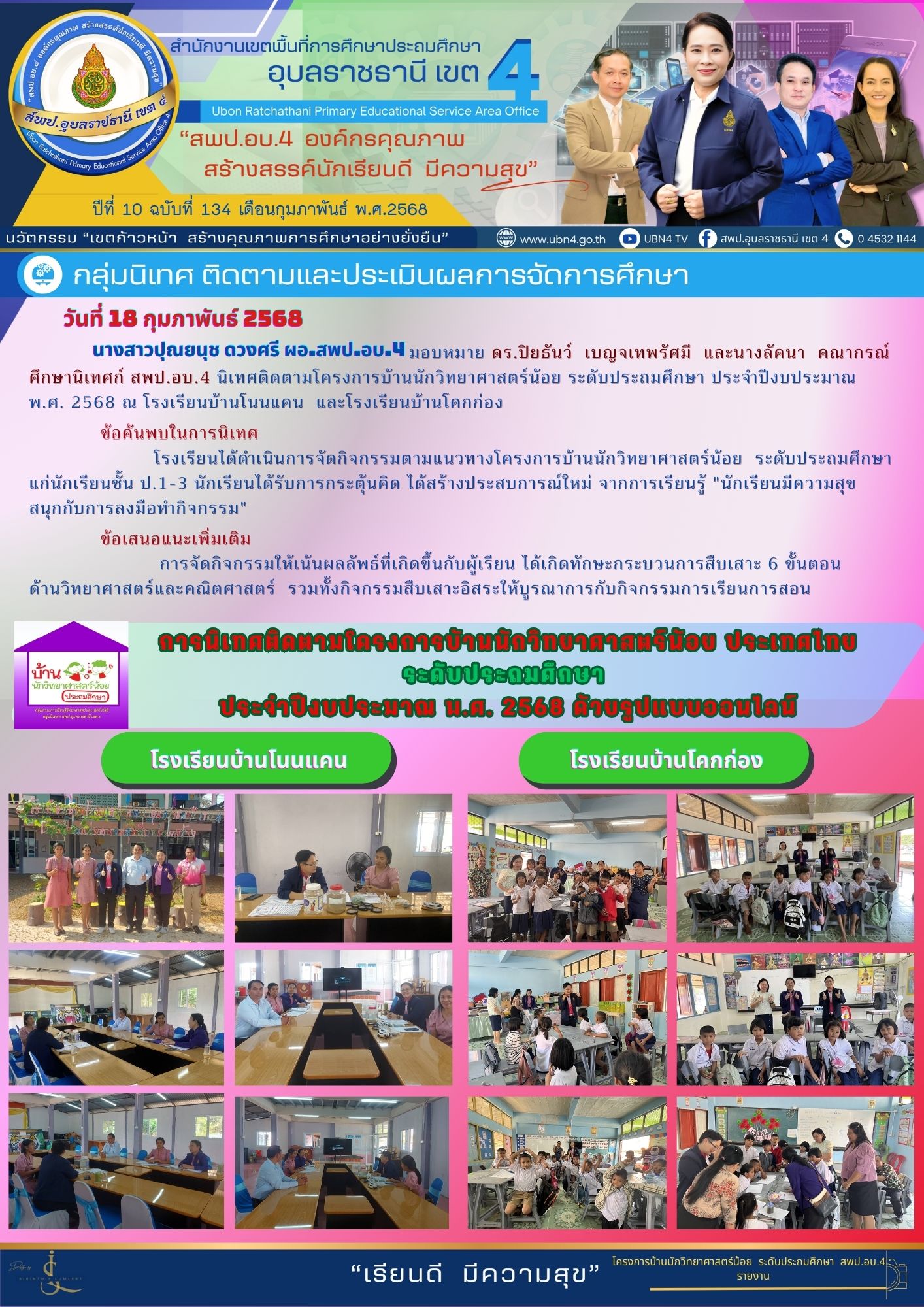 นิเทศติดตามโครงการบ้านนักวิทยาศาสตร์น้อย ระดับประถมศึกษา ประจำปีงบประมาณ พ.ศ. 2568 ณ โรงเรียนบ้านโนนแคนและโรงเรียนบ้านโคกก่อง ก่อนหน้า ต่อไป