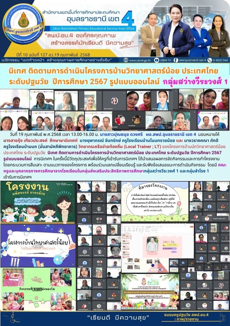 นิเทศ ติดตามการดำเนินโครงการบ้านวิทยาศาสตร์น้อย ประเทศไทย ระดับปฐมวัย ปีการศึกษา 25674 รูปแบบออนไลน์ กลุ่มสว่างวีระวงศ์ 1 ก่อนหน้า ต่อไป