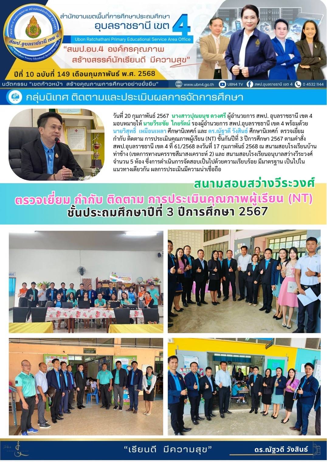 ตรวจเยี่ยม กำกับ ติดตาม การประเมินคุณภาพผู้เรียน (NT) ชั้นประถมศึกษาปีที่ 3 ปีการศึกษา 2567 สนามสอบสว่างวีระวงศ์ ภารกิจ นายวีระชัย ไกยรัตน์ ก่อนหน้า ต่อไป