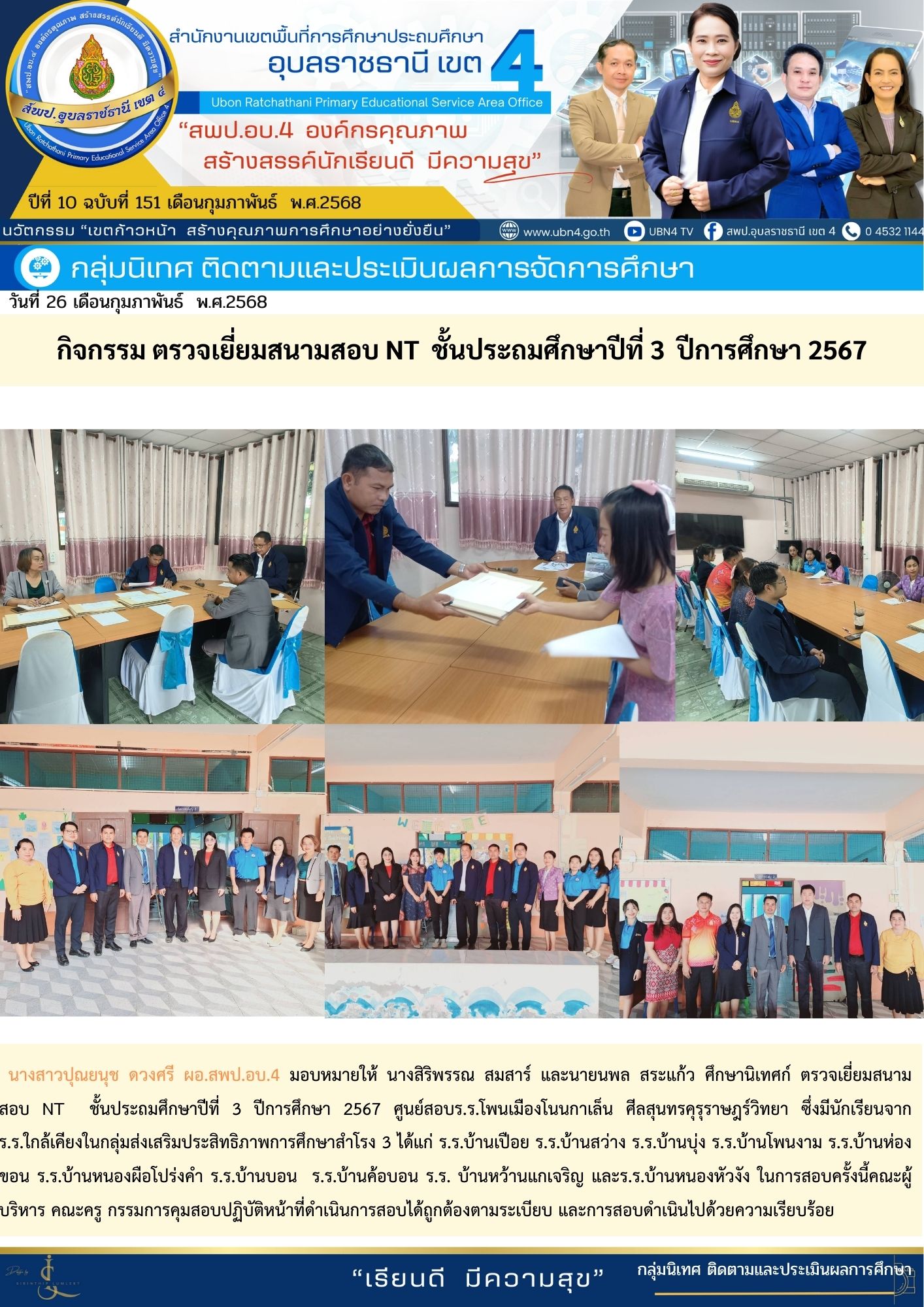 กิจกรรม ตรวจเยี่ยมสนามสอบ NT ชั้นประถมศึกษาปีที่ 3 ปีการศึกษา 2567