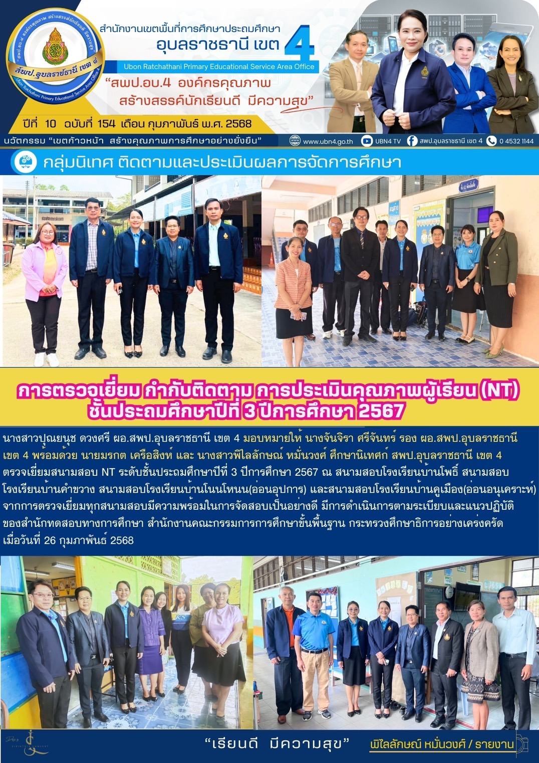 การตรวจเยี่ยม กำกับ ติดตาม การประเมินคุณภาพผู้เรียน (NT) ชั้นประถมศึกษาปีที่ 3 ปีการศึกษา 2567 ภารกิจ นางจันจิรา ศรีจันทร์ ก่อนหน้า ต่อไป