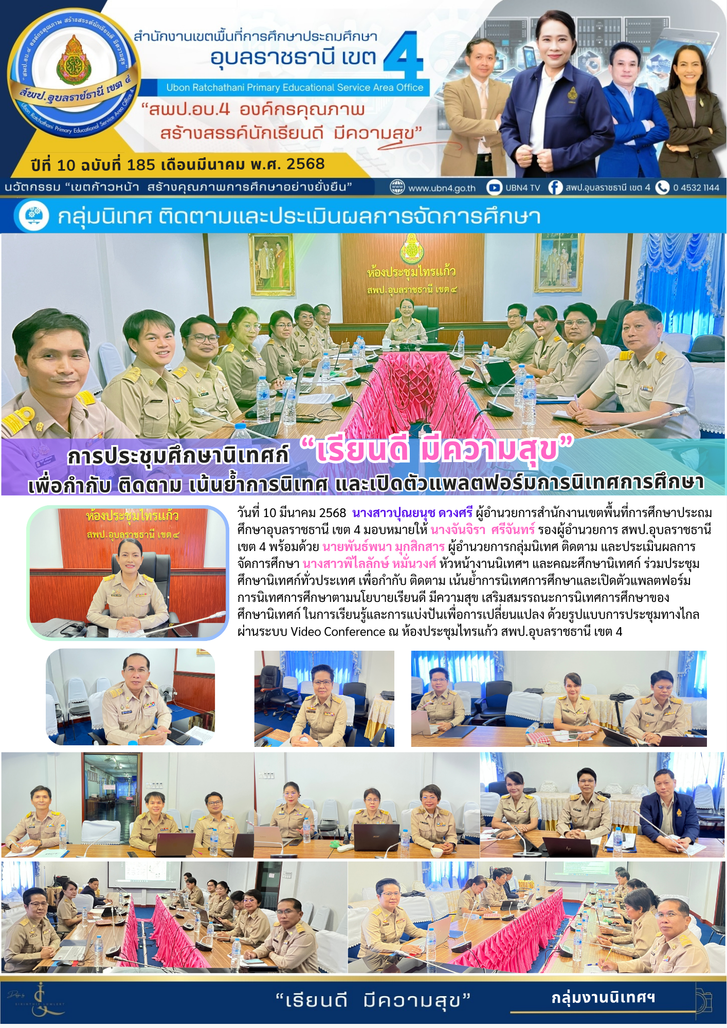 การประชุมศึกษานิเทศก์ "เรียนดี มีความสุข" เพื่อกำกับ ติดตาม เน้นย้ำการนิเทศ และเปิดตัวแพลตฟอร์มการนิเทศการศึกษา ภารกิจ นางจันจิรา ศรีจันทร์ ก่อนหน้า ต่อไป