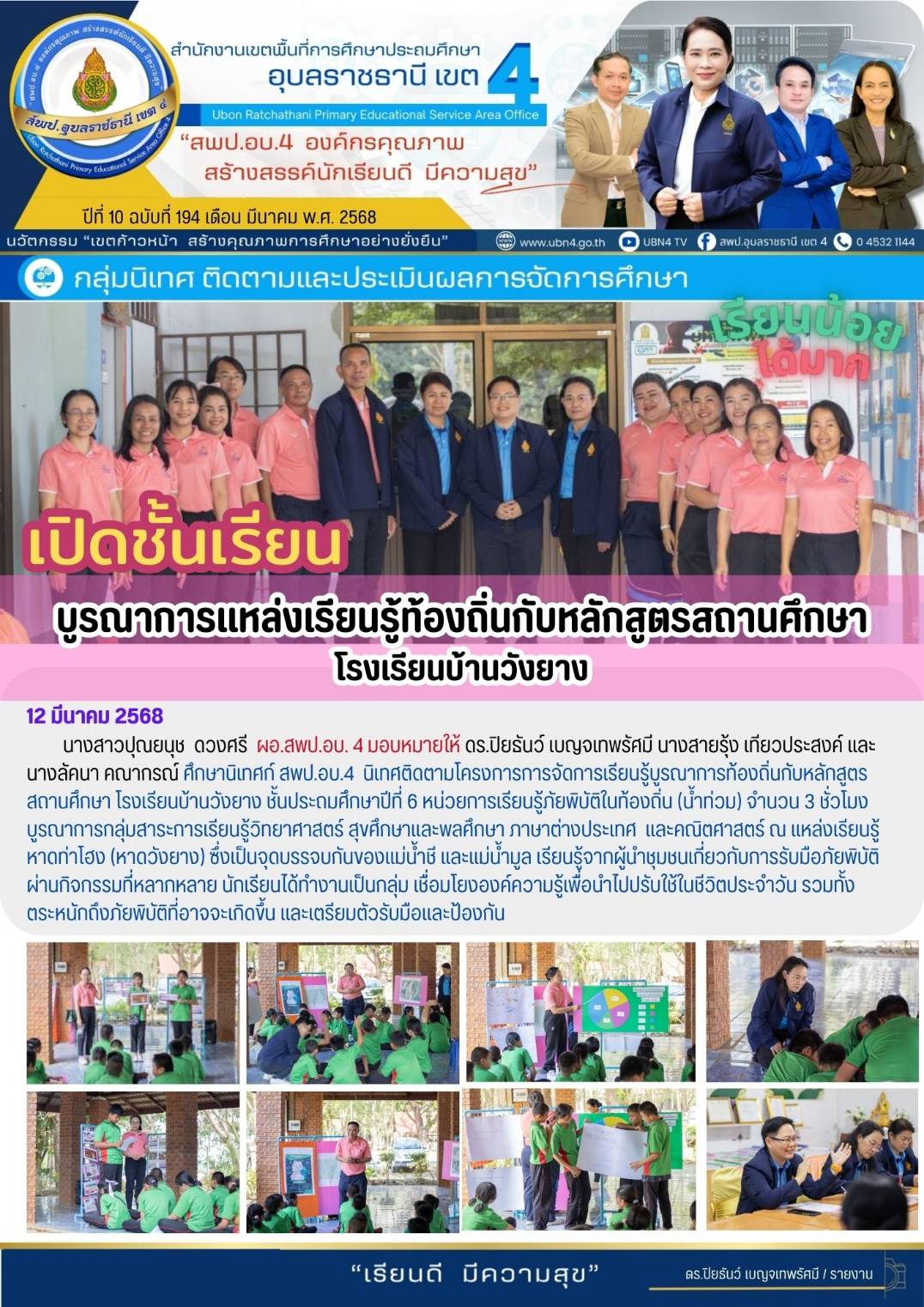เปิดชั้นเรียน บูรณาการแหล่งเรียนรู้ท้องถิ่นกับหลักสูตรสถานศึกษาโรงเรียนบ้านวังยาง