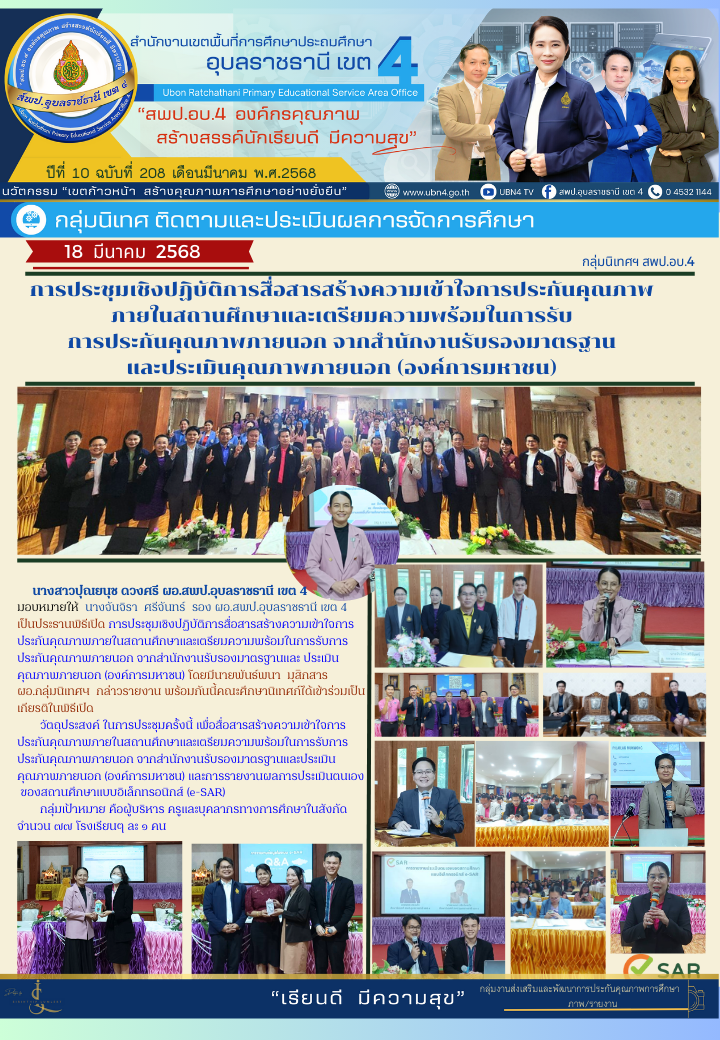 การประชุมเชิงปฏิบัติการสื่อสารสร้างความเข้าใจการประกันคุณภาพภายในสถานศึกษาและเตรียมความพร้อมในการรับการประกันคุณภาพภายนอก จากสำนักงานรับรอง มาตรฐานและประเมินคุณภาพภายนอก (องค์การมหาชน) ภารกิจ นางจันจิรา ศรีจันทร์ ก่อนหน้า ต่อไป