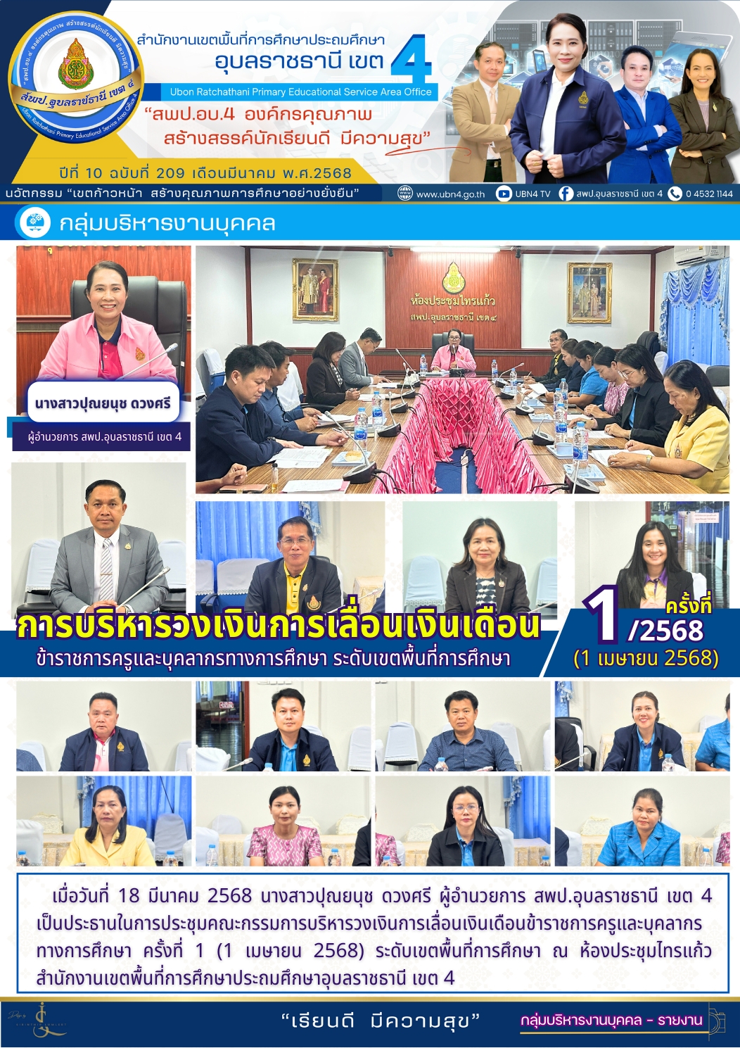 การบริหารวงเงินการเลื่อนเงินเดือนข้าราชการครูและบุคลากร ทางการศึกษา ครั้งที่ 1 (1 เมษายน 2568) ระดับเขตพื้นที่การศึกษา จดหมายข่าวกลุ่มบริหารงานบุคคล ภารกิจ ผอ.สพป.อุบลราชธานี เขต 4 ภารกิจ รอง ผอ.สพป.อุบลราชธานี เขต 4 ภารกิจ ดร.ศักดิ์สิทธิ์ สุภสร ก่อนหน้า ต่อไป