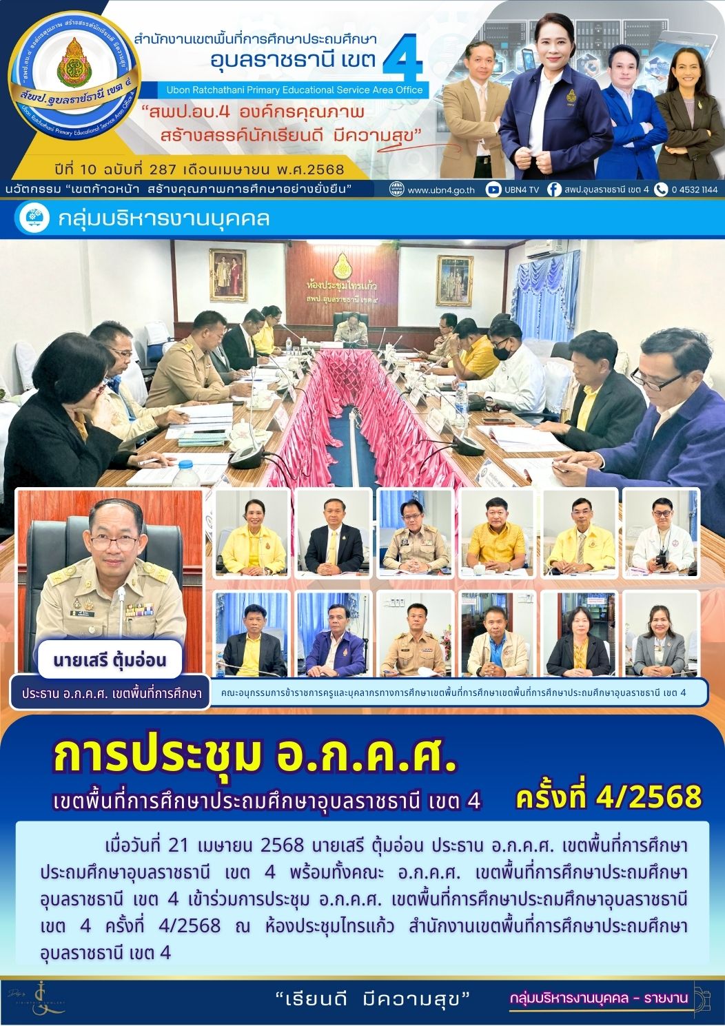 การประชุม อ.ก.ค.ศ. เขตพื้นที่การศึกษาประถมศึกษาอุบลราชธานี เขต 4 ครั้งที่ 4/2568 จดหมายข่าวกลุ่มบริหารงานบุคคล ภารกิจ ผอ.สพป.อุบลราชธานี เขต 4 ภารกิจ รอง ผอ.สพป.อุบลราชธานี เขต 4 ภารกิจ ดร.ศักดิ์สิทธิ์ สุภสร ก่อนหน้า ต่อไป