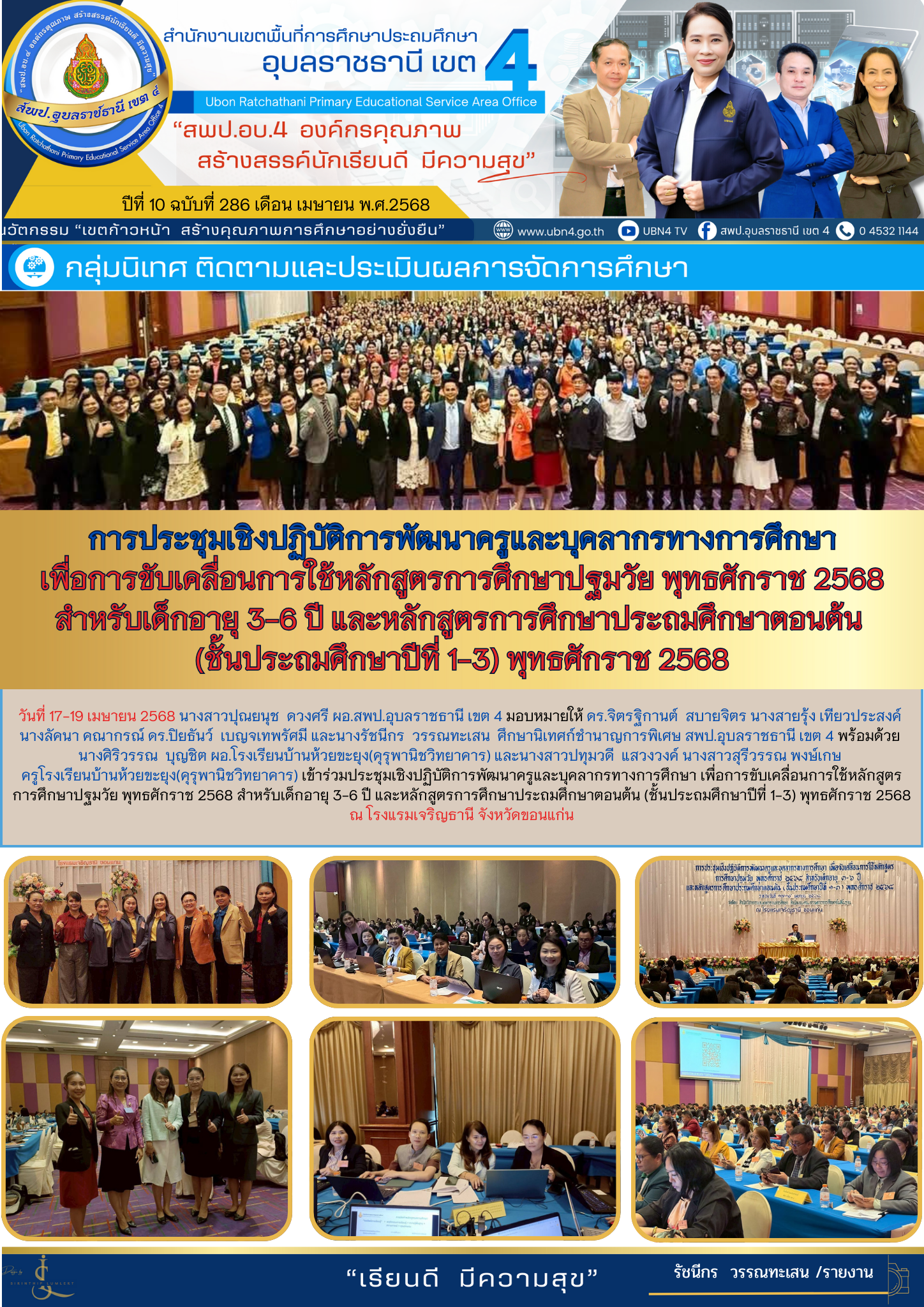 การประชุมเชิงปฏิบัติการพัฒนาครูและบุคลากรทางการศึกษา เพื่อการขับเคลื่อนารใช้หลักสูตรารศึกษาปฐมวัย พุทธศัราช 2568 สำหรับเด็กอายุ3-6 ปี และหลักสูตการศึกษาประถมศึกษาตอนต้น (ป.1-3) พุทธศักราช 2568 ก่อนหน้า ต่อไป