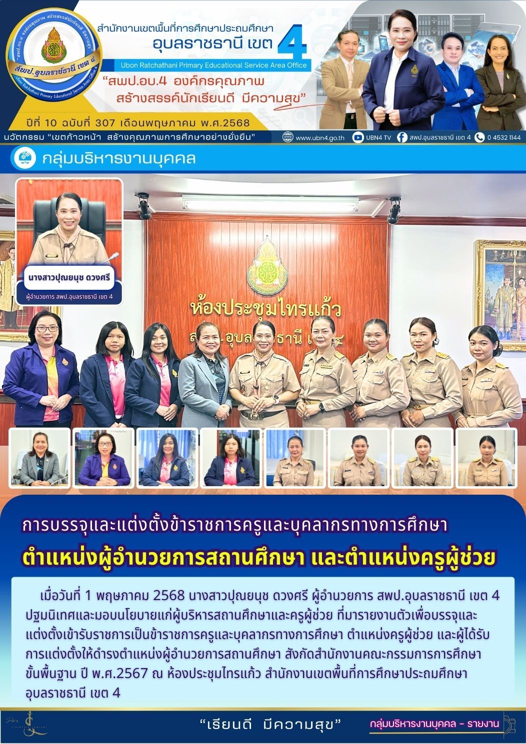 การบรรจุและแต่งตั้งข้าราชการครูและบุคลากรทางการศึกษาตำแหน่ง ผู้อำนวยการสถานศึกษา และ ตำแหน่ง ครูผู้ช่วย จดหมายข่าวกลุ่มบริหารงานบุคคล ภารกิจ ผอ.สพป.อุบลราชธานี เขต 4 ก่อนหน้า ต่อไป