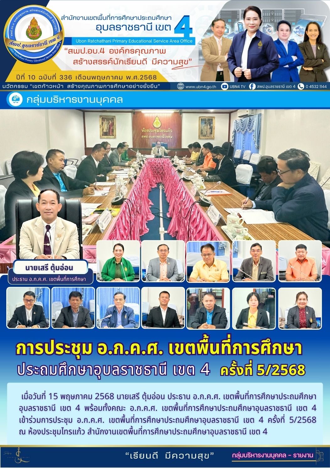 การประชุม อ.ก.ค.ศ. เขตพื้นที่การศึกษาประถมศึกษาอุบลราชธานี เขต 4 ครั้งที่ 5/2568 จดหมายข่าวกลุ่มบริหารงานบุคคล ภารกิจ ผอ.สพป.อุบลราชธานี เขต 4 ภารกิจ รอง ผอ.สพป.อุบลราชธานี เขต 4 ภารกิจ ดร.ศักดิ์สิทธิ์ สุภสร ก่อนหน้า ต่อไป