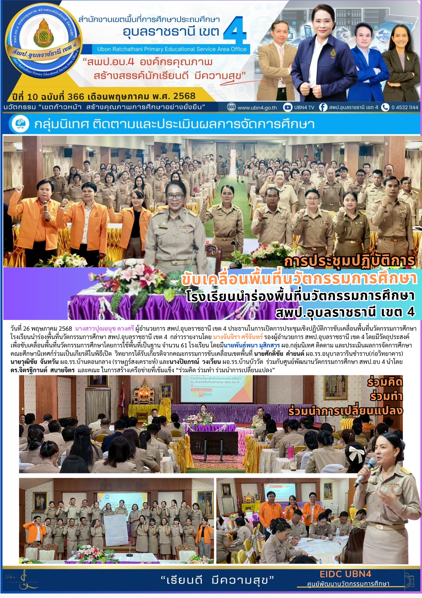 การประชุมเชิงปฏิบัติการขับเคลื่อนพื้นที่นวัตกรรมการศึกษา โรงเรียนนำร่องพื้นที่นวัตกรรมการศึกษา สพป.อุบลราชธานี เขต 4 ภารกิจ ผอ.สพป.อุบลราชธานี เขต 4 ภารกิจ นางจันจิรา ศรีจันทร์ ก่อนหน้า ต่อไป