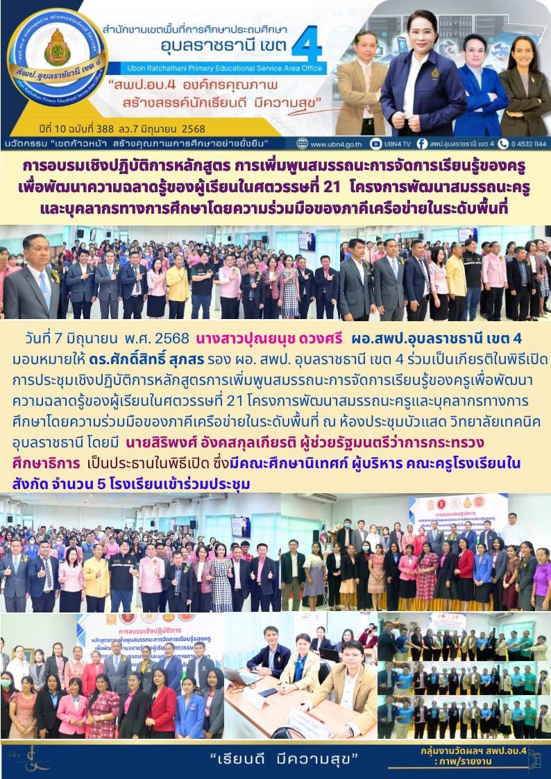 การอบรมเชิงปฏิบัติการหลักสูตร การเพิ่มพูนสมรรถนะการจัดการเรียนรู้ของครูเพื่อพัฒนาความฉลาดรู้ของผู้เรียนในศตวรรษที่ 21 โครงการพัฒนา สมรรถนะครูและบุคลากรทางการศึกษา โดยความร่วมมือของภาคีเครือข่ายในระดับพื้นที่ ภารกิจ ดร.ศักดิ์สิทธิ์ สุภสร ก่อนหน้า ต่อไป