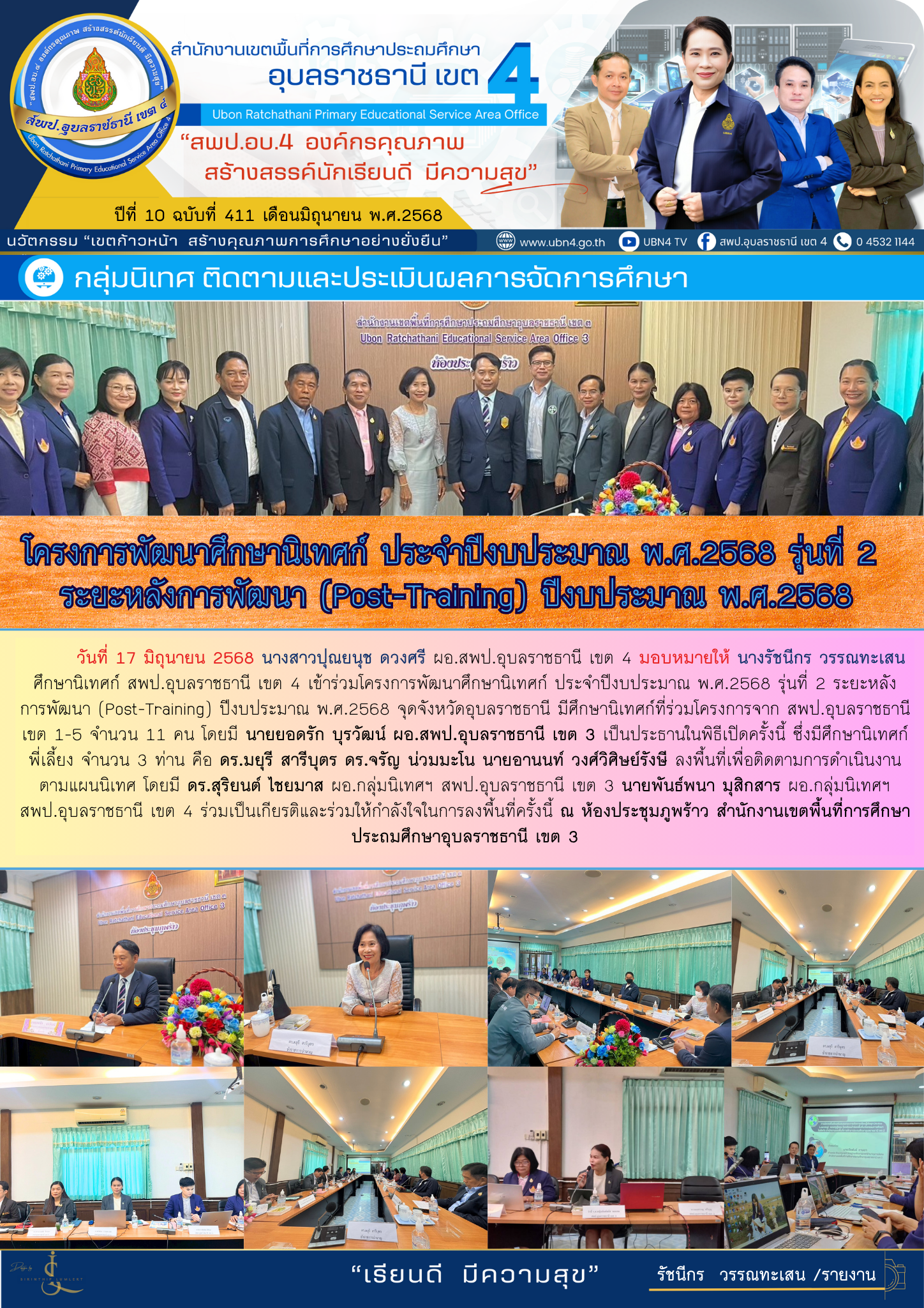 โครงการพัฒนาศึกษานิเทศก์ ประจำปีงบประมาณ พ.ศ. 2568 รุ่นที่ 2 ระยะหลังการพัฒนา (Post-Training) ปีงบประมาณ พ.ศ.2568 ก่อนหน้า ต่อไป