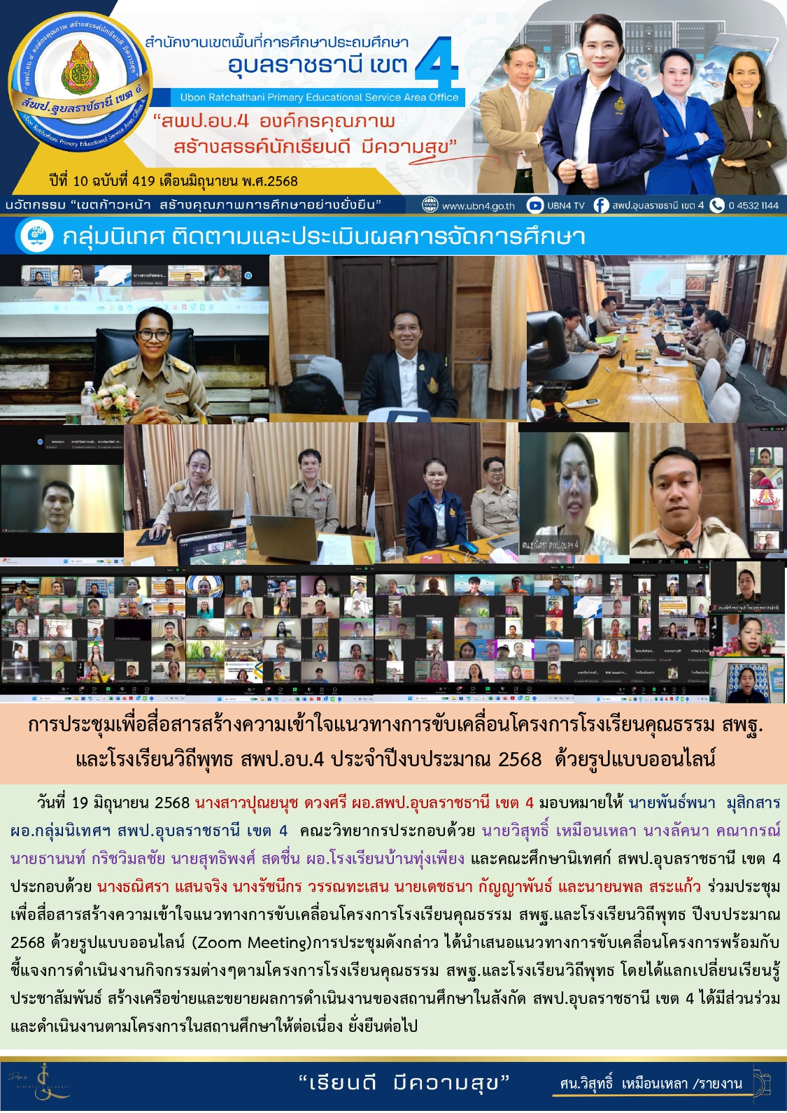 การประชุมเพื่อสื่อสารสร้างความเข้าใจแนวทางการขับเคลื่อนโครงการโรงเรียนคุณธรรม สพฐ. และโรงเรียนวิถีพุทธ สพป.อบ.4 ประจำปีงบประมาณ 2568 ด้วยรูปแบบออนไลน์ ก่อนหน้า ต่อไป