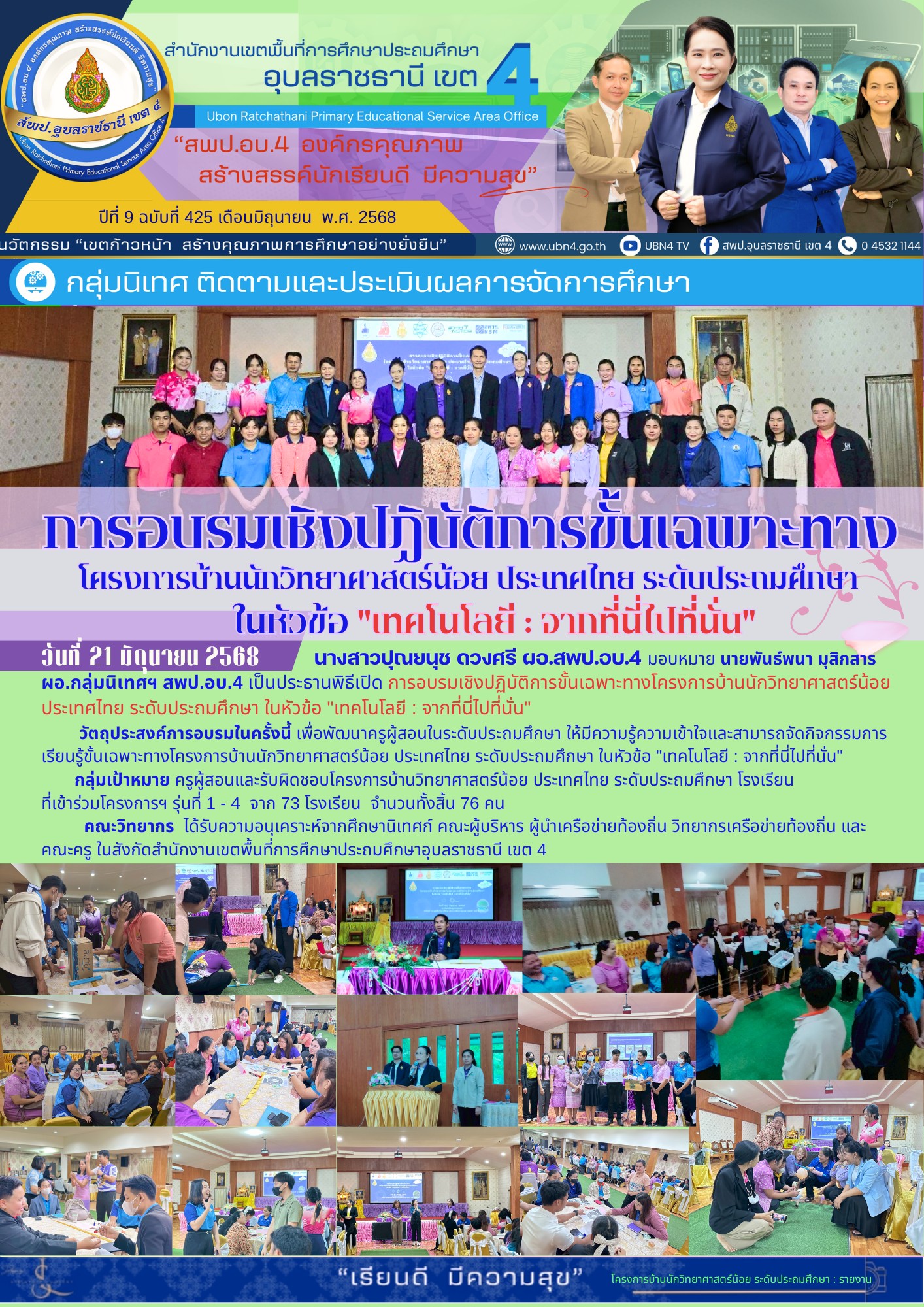 การอบรมเชิงปฏิบัติการขั้นเฉพาะทางโครงการบ้านนักวิทยาศาสตร์น้อย ประเทศไทย ระดับประถมศึกษา ในหัวข้อ "เทคโนโลยี : จากที่นี่ไปที่นั่น" ก่อนหน้า ต่อไป