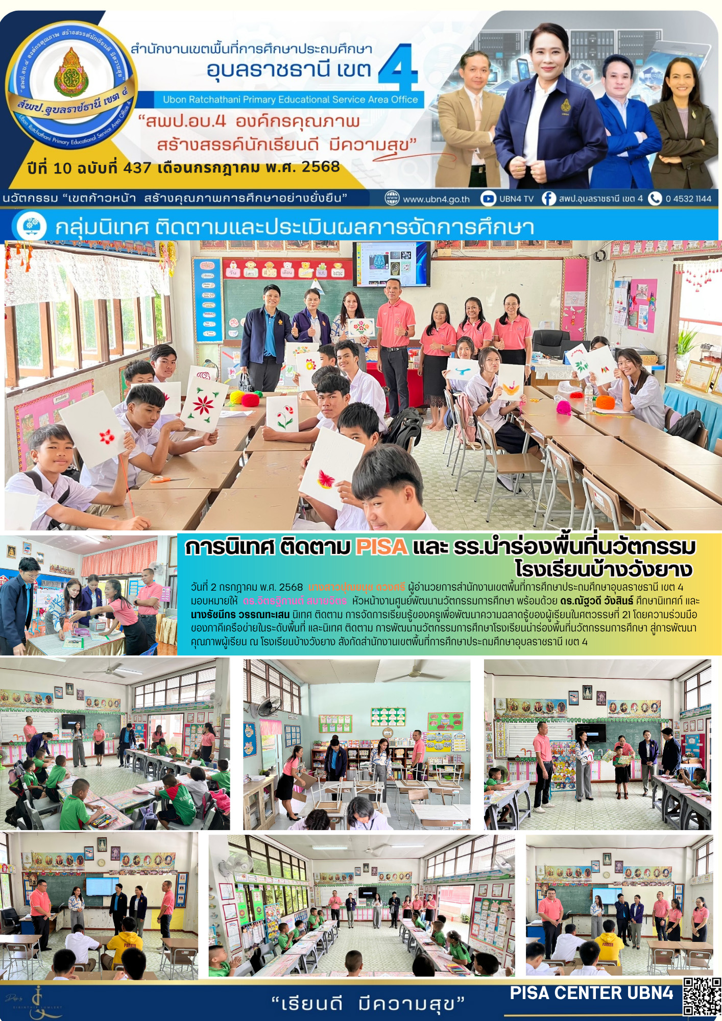 การนิเทศ ติดตาม PISA และโรงเรียนนำร่องพื้นที่นวัตกรรมโรงเรียนบ้านวังยาง