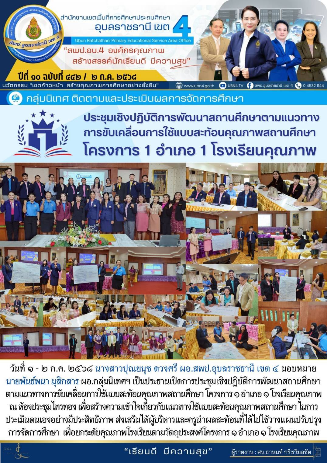 ประชุมเชิงปฏิบัติการพัฒนาสถานศึกษาตามแนวทางการขับเคลื่อนการใช้แบบสะท้อนคุณภาพสถานศึกษา โครงการ 1 อำเภอ 1 โรงเรียนคุณภาพ ก่อนหน้า ต่อไป