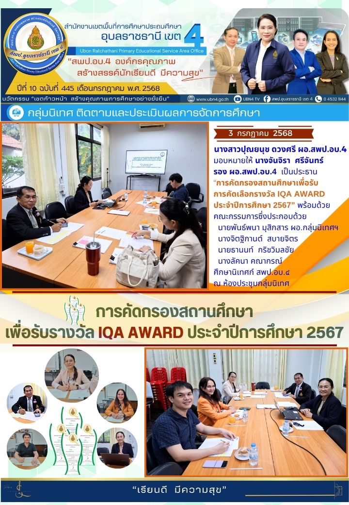 การคัดกรองสถานศึกษาเพื่อรับรางวัล IQA AWARD ประจำปีการศึกษา 2567 ภารกิจ นางจันจิรา ศรีจันทร์ ก่อนหน้า ต่อไป