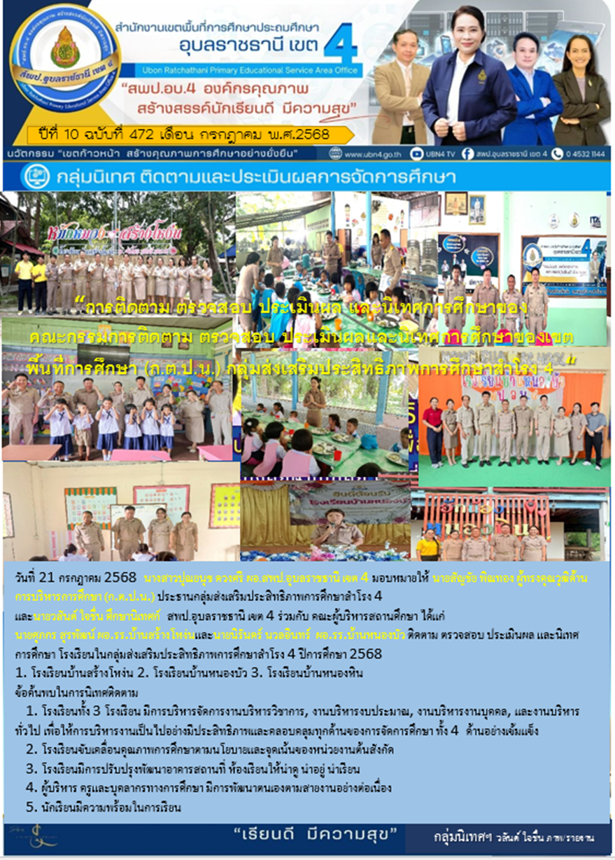 การติดตาม ตรวจสอบ ประเมินผลและนิเทศการศึกษาของคณะกรรมการติดตาม ตรวจสอบ ประเมินผลและนิเทศการศึกษาของเขตพื้นที่การศึกษา (ก.ต.ป.น.) กลุ่มส่งเสริมประสิทธิภาพการศึกษาสำโรง 4 ก่อนหน้า ต่อไป